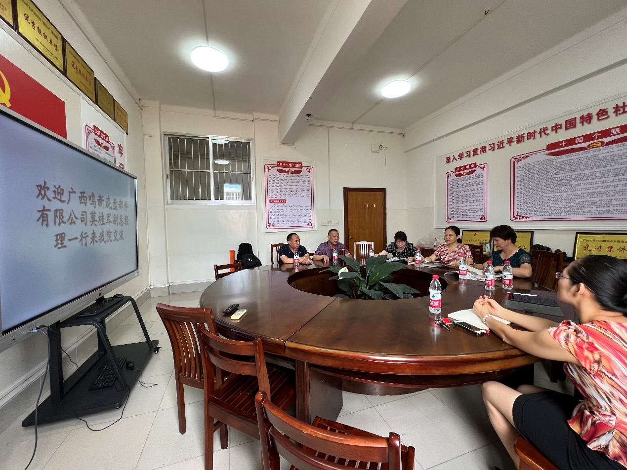 2022年7月8日上午,桂林鸣新底盘有限公司莫桂军副总经理以及综合管理部马超群部长一行,到我院进行产学研交流。学院常务副院长蒙艳玫、党委副书记黄路明、副院长李俚,以及车辆工程系主任覃频频等相关老师参加了座谈会。