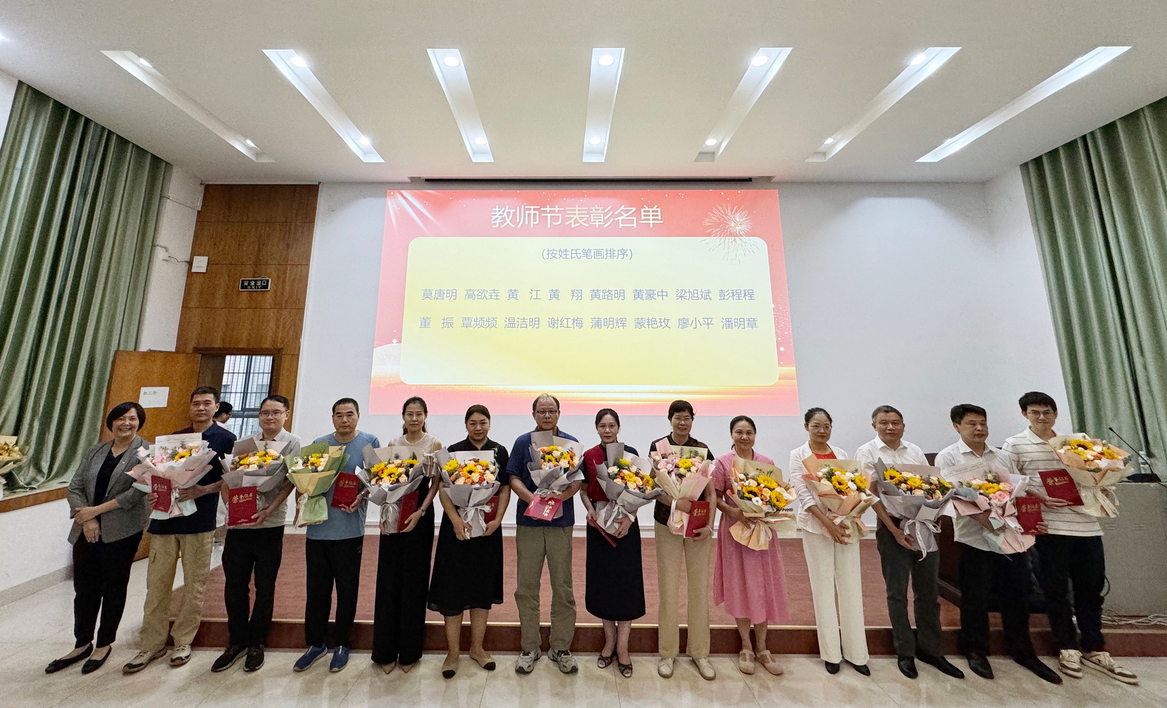 卢婵江书记代表学院向全院教职工致以节日的问候,向受到表彰的教职工表示祝贺。今年我院蒙艳玫教授获评全国优秀教师,贺德强教授获评自治区模范教师,是学院多年来注重师资队伍建设的成果,学院致力于培养造就一支师德高尚、业务精湛、结构合理的高素质教师队伍。她指出,学院正处在高质量发展向上突围的关键时期,希望广大教职员工能够凝心聚力,砥砺前行,开启学院高质量发展的新征程。