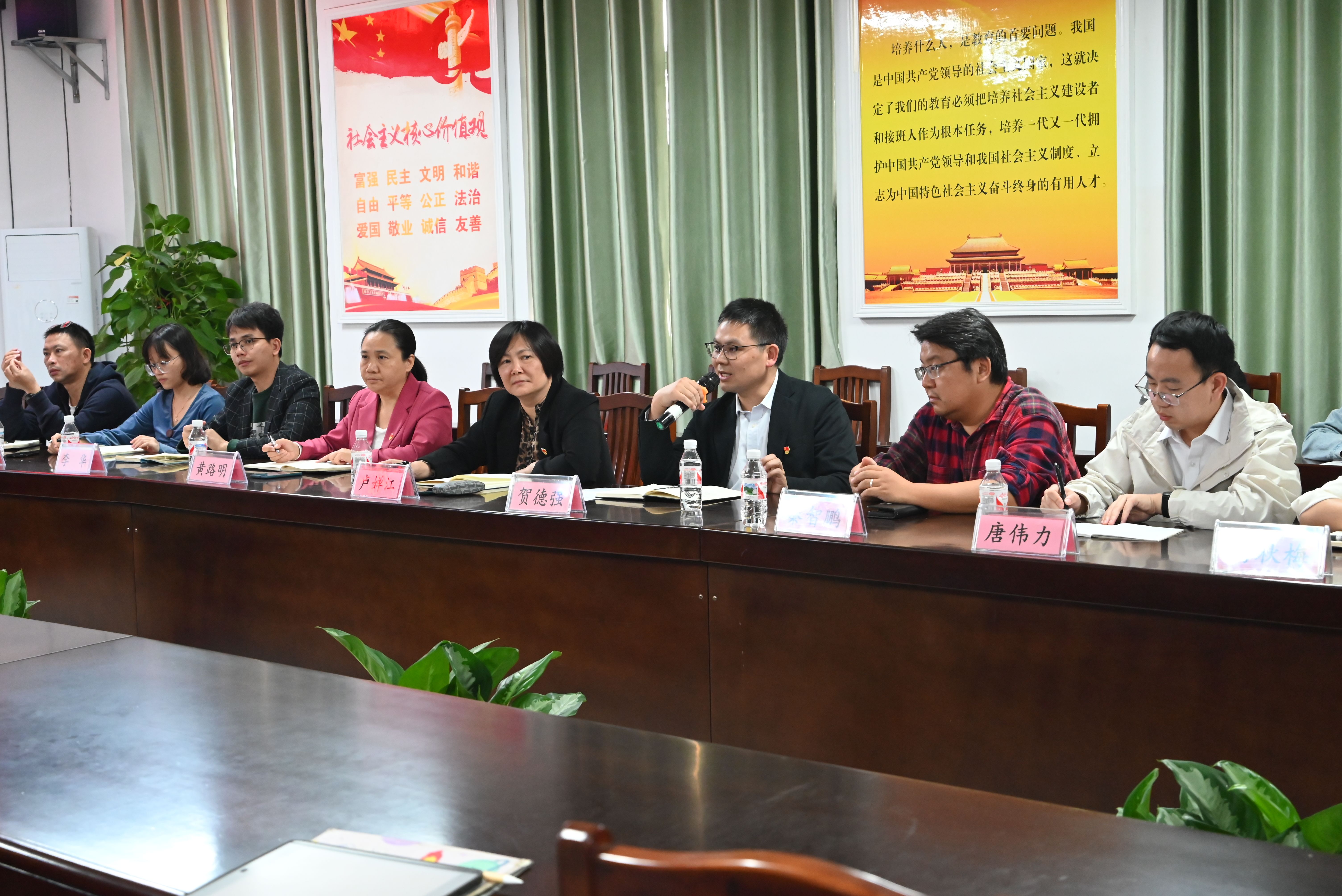 贺德强向与会师生总结介绍了当前我院研究生教育现状,鼓励老师和学生们畅所欲言,互相交流,通过交流的方式找出存在的问题,提出合理的建议,进而获得更好的教学效果和培养质量。