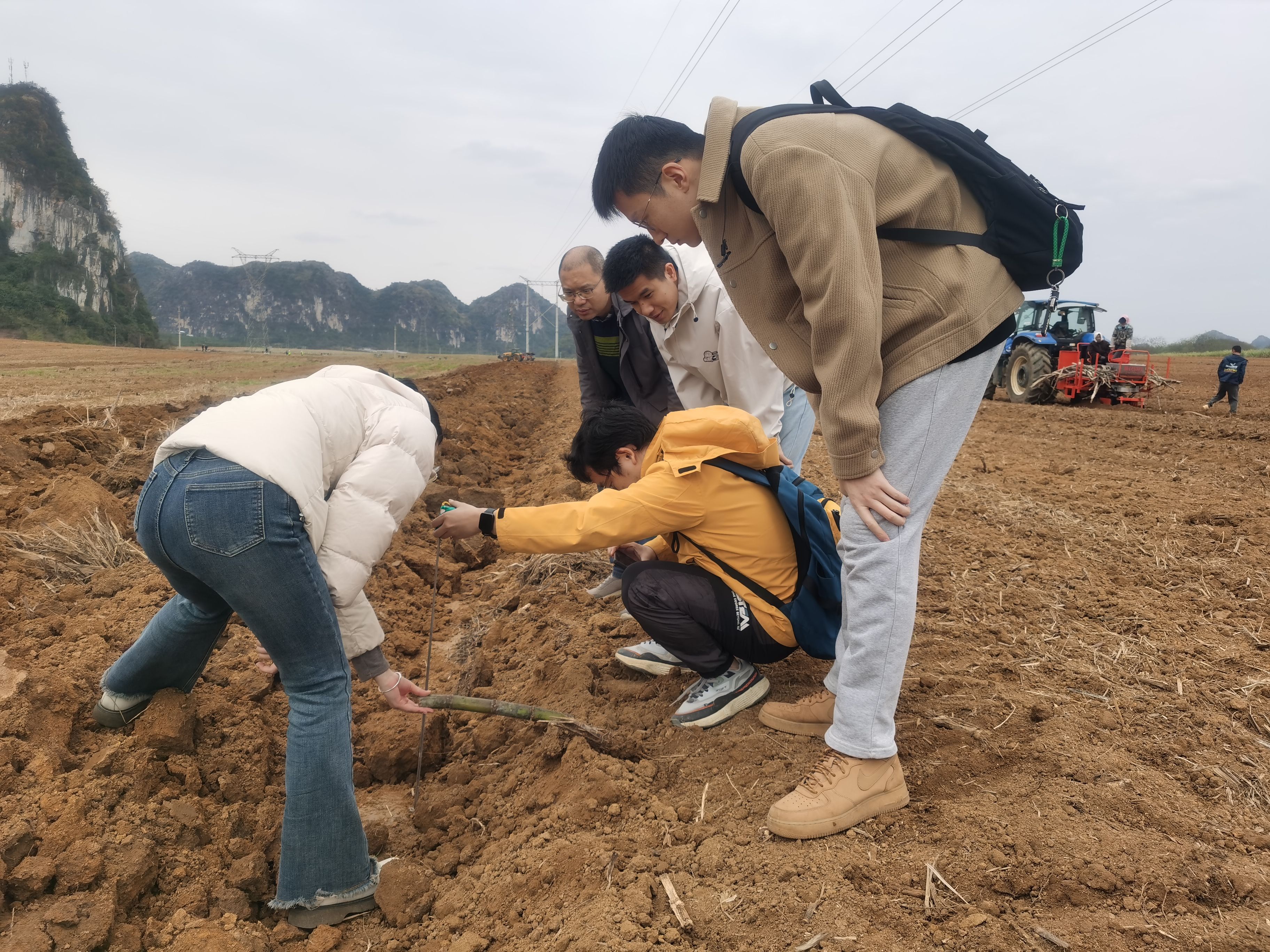 2025年3月18日,由广西农业农村厅主办,扶绥县人民政府承办的“2025年广西甘蔗机械化春种春管现场会”在我院位于农科新城的“广西农业机械化产学研推示范基地”召开。此次现场会以“甘蔗春种春管智慧农机+”为主题,集中展示了智能化、无人化农机设备在甘蔗春种春管中的创新应用,为推动甘蔗产业现代化发展注入强劲科技动能。学院党委书记、现代产业学院常务副院长卢婵江、现代产业学院办公室主任杨望等20名师生代表到现场观摩。