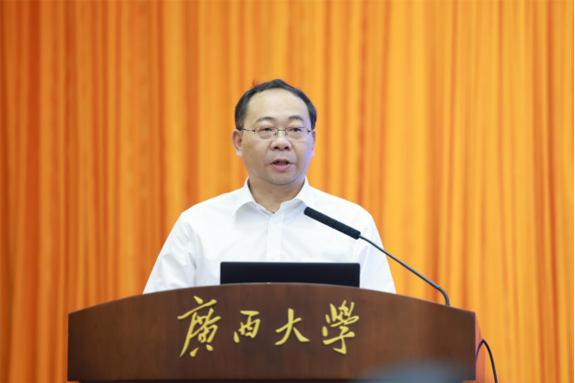 主题论坛部分于7月3日上午采用“线下论坛+线上直播”的方式在广西大学君武馆玉林厅进行,邀请到被誉为“亚洲电动车之父”的中国工程院院士陈清泉,原天津大学国家重点实验室主任尧命发,浙江大学智能汽车研究中心主任潘之杰、精进电动科技总裁余平等10多位全国新能源汽车领域的知名专家,各自分享包括浙江大学、北京航空航天大学、重庆大学、同济大学、吉林大学、香港理工大学、香港科技大学、香港城市大学等高校的最新相关研究成果,通过“盖世汽车”直播方式线上参会的人数达1.6万人。广西大学常委、副校长于文进、工信厅、科技厅等自治区相关职能部门出席论坛开幕式。于文进副校长代表广西大学致开幕辞,介绍广西大学基本情况及近年来的发展,强调高校服务国家战略和地方支柱产业发展的重要意义,希望通过论坛能搭建起广西大学与粤港澳大湾区、全国高校、地方龙头企业之间的交流合作平台,通过积极推动科技成果的充分交流和成果转化,为广西新质生产力的构建以及新能源汽车产业的高质量发展贡献西大力量。