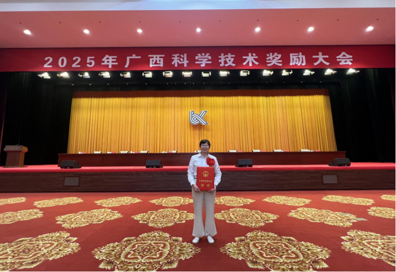 2025年7月4日,广西科学技术奖励大会在南宁召开,大会公布2024年度广西科学技术奖获奖榜单,并为获奖者颁奖。我院获2024年度广西科学技术奖3项,其中贺德强教授荣获科学技术进步奖一等奖(第一完成单位),蒙艳玫教授荣获科学技术进步奖二等奖(第一完成单位),黄豪中教授荣获科学技术进步奖一等奖(第二完成单位)。