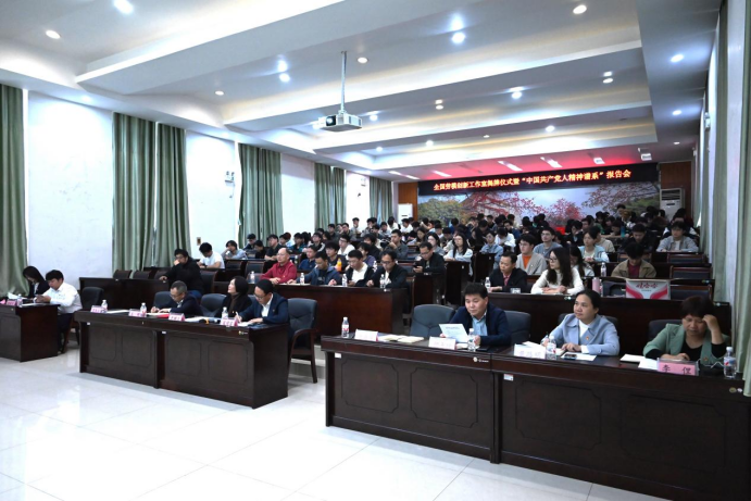 匠心传承映初心,党建领航育新篇。2025年12月9日下午,“王辉劳模创新工作室”揭牌仪式暨“中国共产党人精神谱系”报告会在学院机二阶举行。活动分揭牌仪式、专题报告以及实验室参观三个阶段。校党委组织部副部长李道洋、校教务处副处长胡立坤、玉柴股份研发总院党委书记兼常务副院长寇传富、玉柴研发总院副院长王辉以及我院院长贺德强、副书记黄路明、副院长李俚、黄豪中等院党委领导出席。活动由院党委书记卢婵江主持。