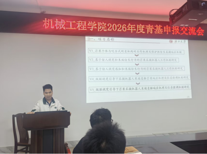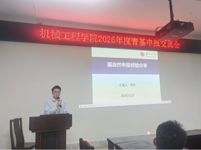 为扎实推进2026年度国家自然科学基金项目申报工作,有效提升青年教师的项目书撰写质量与申报成功率,我院于2025年12月9日下午,成功举办了国家自然科学基金青年基金项目申报经验交流会。会议特邀本院2025年度新获资助的三位青年教师进行专题分享,学院院长贺德强、科研副院长黄豪中出席会议,全院共21位符合申报条件的青年教师积极参会。