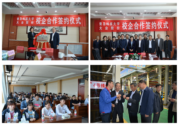5月17日,青岛科技大学材料学院与山东大业股份有限公司(简称“大业股份”) 产学研合作签约仪式在大业股份总部的会议室举行。大业股份党委书记窦宝森、总经理郑洪霞等股份公司的领导,诸城市委常委、组织部部长崔欣,材料学院党委书记杜芳林、院长谢广文及教师代表参加了签约仪式。郑洪霞总经理、谢广文院长代表双方签约并为教学实习就业基地揭牌。