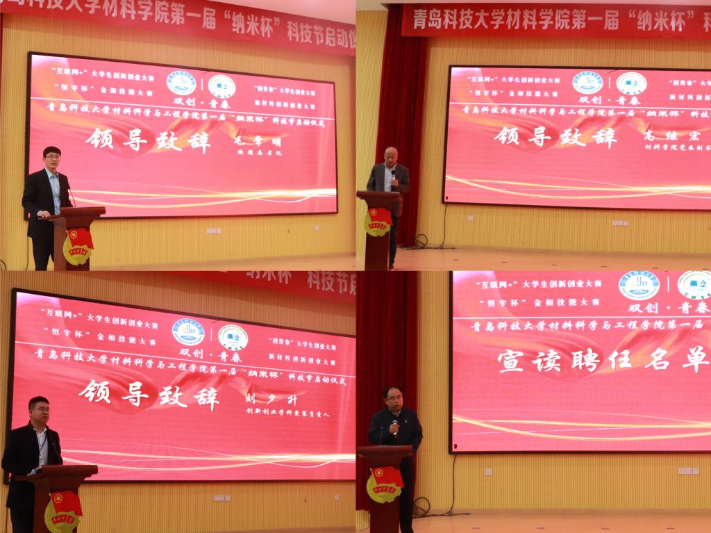 4月27日,材料学院在四方校区尚舜讲学厅举行第一届“纳米杯”科技节启动仪式。校团委书记毛常明、泰山学者姜鲁华、学院党政领导李桂村、于薛刚、高继宏以及创新创业教育学院学科竞赛相关负责老师、创新创业受聘老师和青年学生代表参加了本次启动仪式。