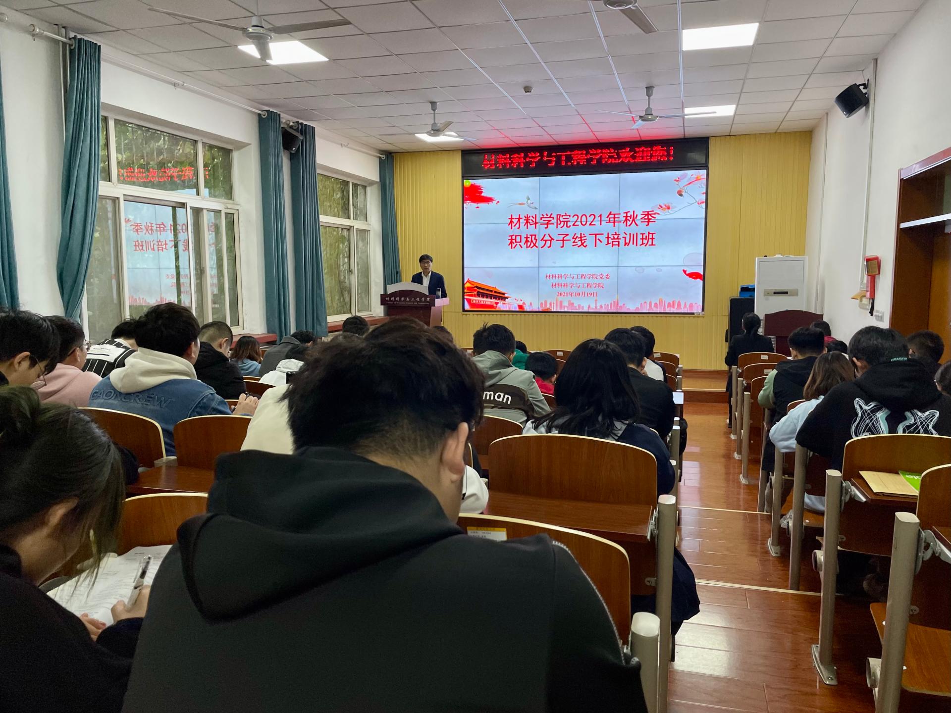 为深入贯彻落实中共青岛科技大学委员会党校关于2021年秋季入党积极分子培训班通知要求,教育引导入党积极分子认真学习党的基本理论知识,加强党性修养,提高政治觉悟,材料学院分党校于10月19日下午和10月20日晚在材料学院101会议室举办2021年秋季入党积极分子培训班。材料学院组织员赵兴国、学院党委副书记高继宏为党课主讲人,58名入党积极分子参加培训班学习。