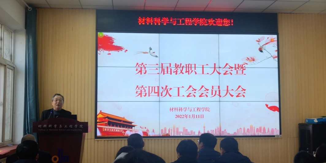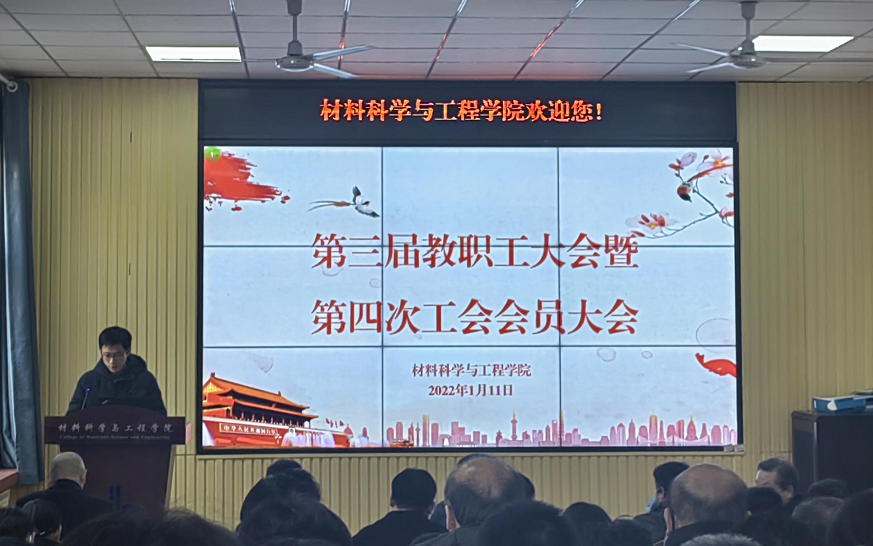 1月11日下午,材料学院第三届教职工暨第四次工会会员大会在学院101会议室召开。