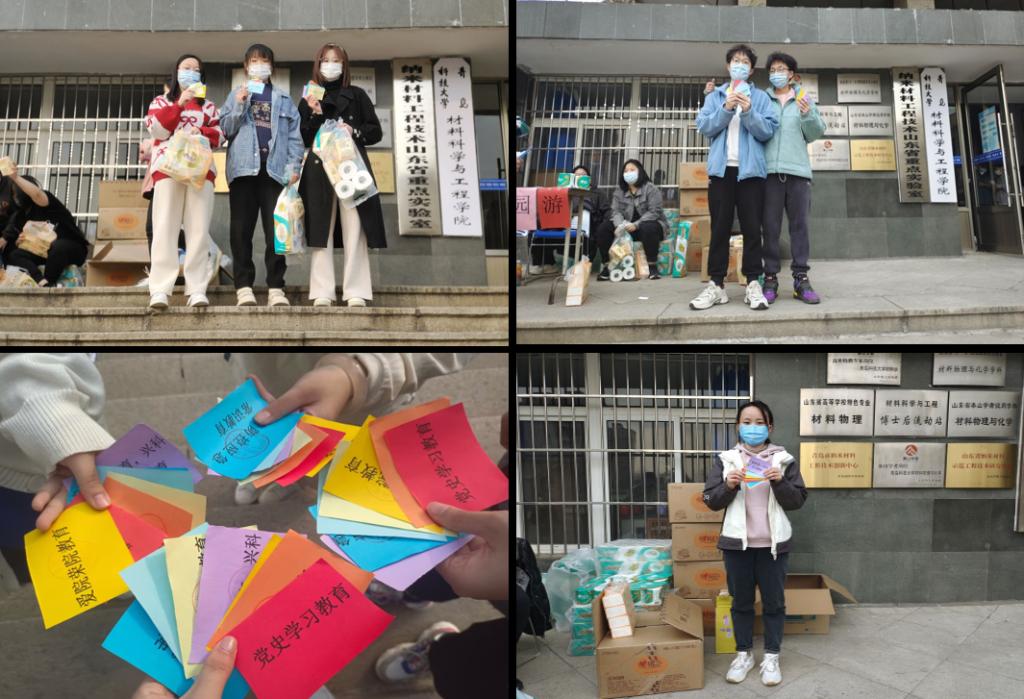 在本次活动中,学院将校团委拨付的特殊团费落到实处,及时了解在校学生的真实诉求,集中采购生活必需品,以活动奖品的形式发放给所有参与学生,做到“取之于青年用之于青年”。在疫情防控这节“思政大课”中,材料学院始终以学生为本,不断做好“出彩材料人”思政教育,引导全院在校生在校园的春日美景中发现科大故事、展现青年活力、讲好青年声音。学院也将继续将讲好“疫情防控思政大课”与落实立德树人根本任务、护航新时代材料人的成长发展相结合,在疫情防控工作的实践斗争中不断培养和锻炼材料学子的爱国情怀、荣校意识、专业素养、职业精神以及强健体魄,在五育并举与“思政大课”的有机结合中实现润物无声的育人效果。