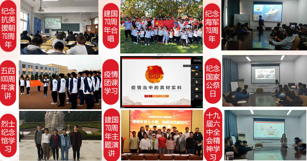 以习近平新时代中国特色社会主义思想武装头脑。深入贯彻习近平总书记关于青年工作的重要思想和十九届六中全会精神,以庆祝中国共产党成立100周年为契机,积极响应校团委“100+10”党史学习教育倡议,举办十九届六中全会精神学习班、国家公祭日宣讲、永远跟党走、建党100周年等主题团课30余次;学院党委书记、副书记带头讲授《形势与政策》课程,课堂引领和把握青年学生思想意识形态;学院谢广文、王兆波教授等著《思政与实践案例—材料专业入学教育》“课程思政”专业书籍,在课堂教学中嵌入“思政”元素;将“青年大学习”与支部建设、团员日常教育培养一体化相融合,“青年大学习”全年学习率100%,支部成员积极参加第十七届“挑战杯”大学生课外学术科技作品竞赛红色专项训练项目,参与率达100%,其中一个项目获山东省二等奖。