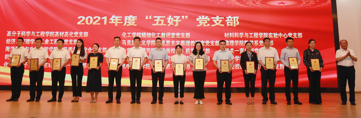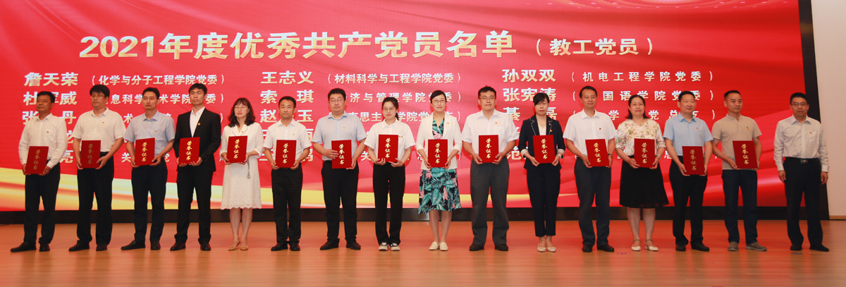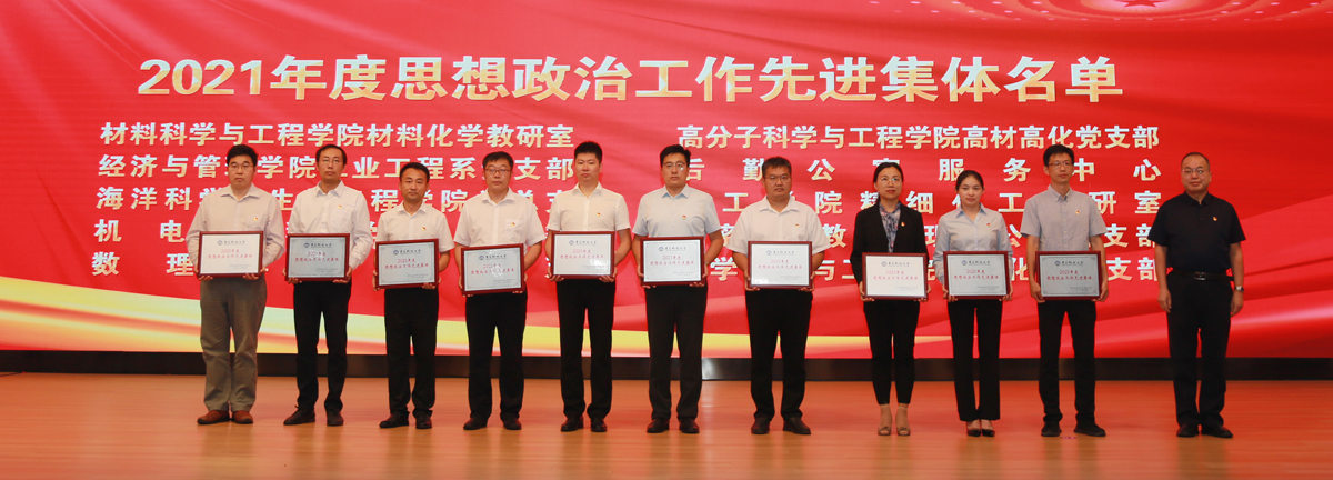会上,校党委书记李兴伟、校长陈克正代表学校向为学校事业发展做出卓越贡献、“光荣在党50年”的各位老同志、老领导致以崇高的敬意,向长期以来奋斗在各个岗位上的全体党员同志和广大师生员工表示衷心的感谢,向获得表彰的先进集体和个人表示热烈的祝贺。校党委常委、副校长李勇代表学校党委作2022年党建与思想政治工作报告。党委常委、副校长吕万翔宣读表彰文件,对2021年度“五好”党支部、思想政治工作先进集体、优秀共产党员等进行了表彰,其中,材料化学教研室获思想政治工作先进集体,实验中心党支部获“五好”党支部,王志义获优秀共产党员,徐玄烨(学生)获优秀共产党员。王兆波等撰写的论文《抓学习,强宣传,重实践,以党建为引领推动课程思政教育》获优秀论文(案例)二等奖,逄柏鹏等撰写的论文《社会主义核心价值观视域下新时代大学生劳动教育培养研究》获二等奖,贾玺章等撰写的论文《“互联网+”时代下高校党建与思想政治工作新模式探究》。