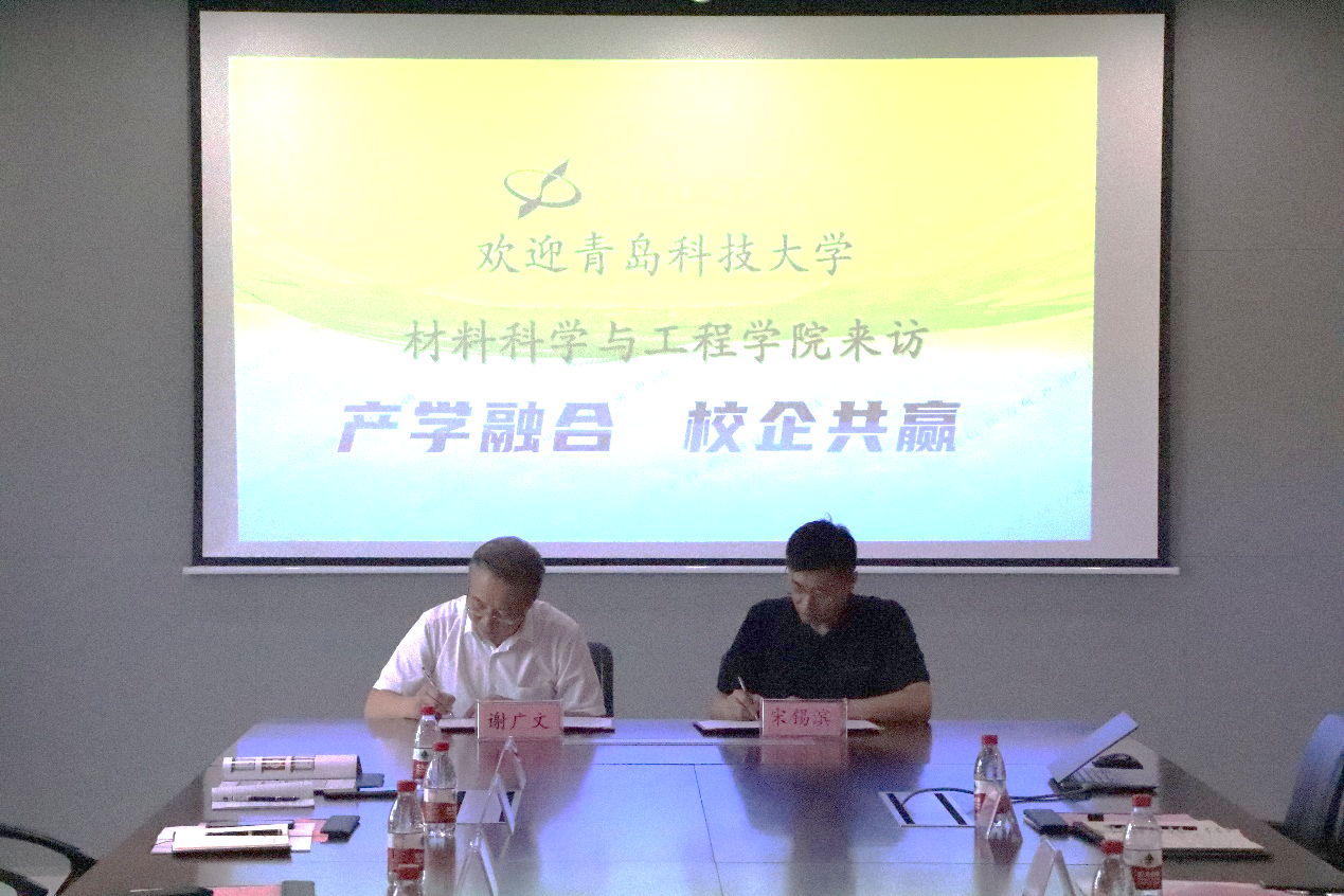 会上,谢广文院长与集团董事宋锡滨签署共建省级工程研究中心的合作协议,并共同为“青岛科技大学教学实习就业基地”揭牌。