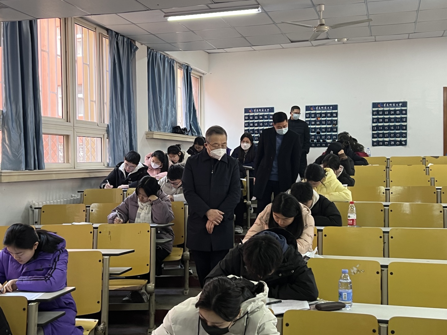 守底线,学院领导班子进考场。为深入落实《青岛科技大学学风建设行动计划(试行)》,2月20日新学期第一天,材料学院领导班子成员在院长谢广文带领下,深入考场巡察考试情况。学院领导对考场的布置、考试秩序、监考教师履职和考生答题情况进行全面、细致地检查和指导。从考场情况来看,监考教师工作认真,学生考试态度端正,考试组织井然有序,考风考纪良好。学院还通过“开学第一课”、考风考纪诚信教育、签订诚信考试承诺书等,教育引导学生树立诚信意识,端正考试态度,弘扬优良考风,进一步杜绝考试违纪和作弊现象,引导学生争做“有德性、守契约、讲诚信”的科大人。