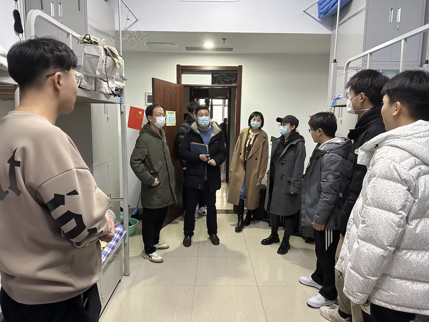 送关怀,走访慰问学生宿舍。2月19日下午,学院党委副书记兼副院长葛夫国及学工办全体教师走访学院本科生及研究生宿舍,及时了解学生返校后的学习、生活状态,掌握学生思想动态。走访过程中,辅导员们详细了解了同学们寒假期间的学习与生活状况,耐心询问返校后是否存在困难,并送上温暖的关爱和祝福。葛夫国叮嘱同学们,开展好春季爱国卫生运动,维护好文明健康绿色的宿舍环境,在新形势下继续发扬“抗疫精神”,加强体育锻炼,共同营造良好的学习风气和科技创新氛围,以积极的心态迎接接下来的期末考试、考研复试、求职就业等工作当中。