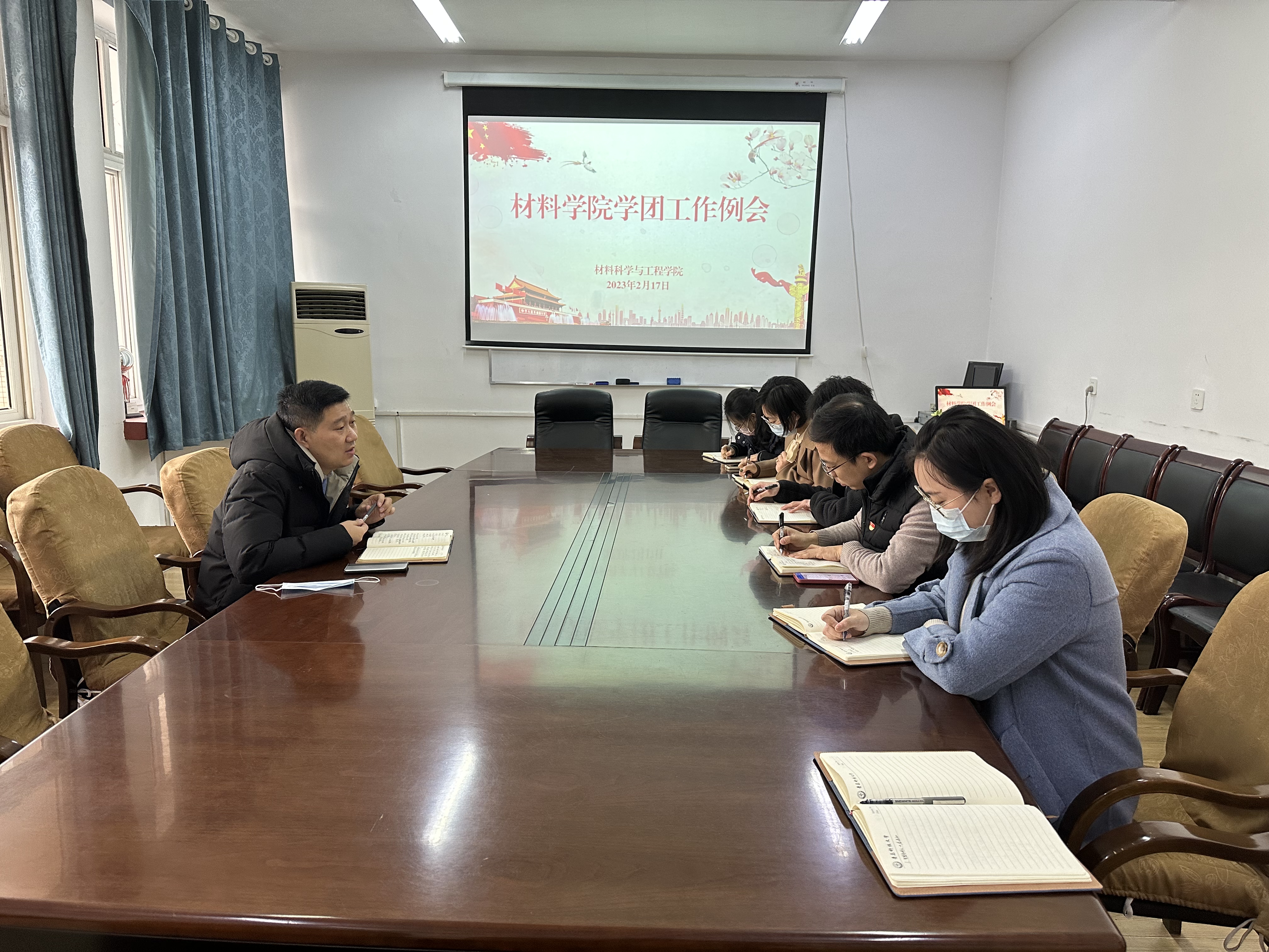 谋规划,召开新学期学团工作例会。2月17日上午,学院学工队伍围绕新学期工作召开例会,总结复盘上一年的工作,对新学期学生工作总体思路、目标任务及有关工作安排进行了集中研讨和部署,学院党委副书记兼副院长葛夫国要求全体辅导员,一是树牢严真细实快的工作作风,对标问题短板,以“六个坚持”和提升“六个力”全面加强自身建设;二是及时总结工作经验,有组织开展学团工作研究,注重特色品牌凝练,用事实说话,用数据说话,全方位服务学科建设;第三是积极拓展工作平台,掌握新时期思政工作话语权,开拓和运营好微信、抖音等新媒体工具,创新工作方式方法,不断提升新时期思想政治工作育人实效。
