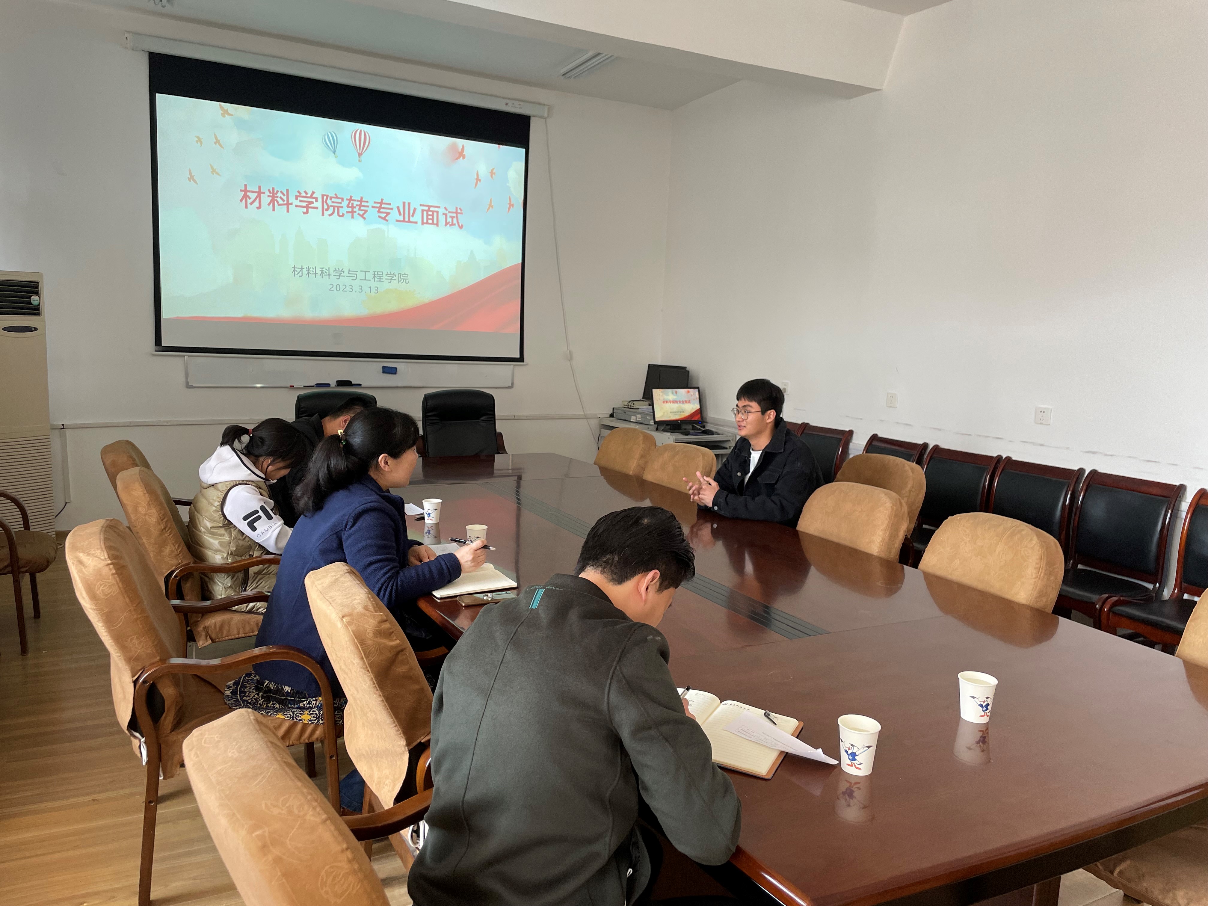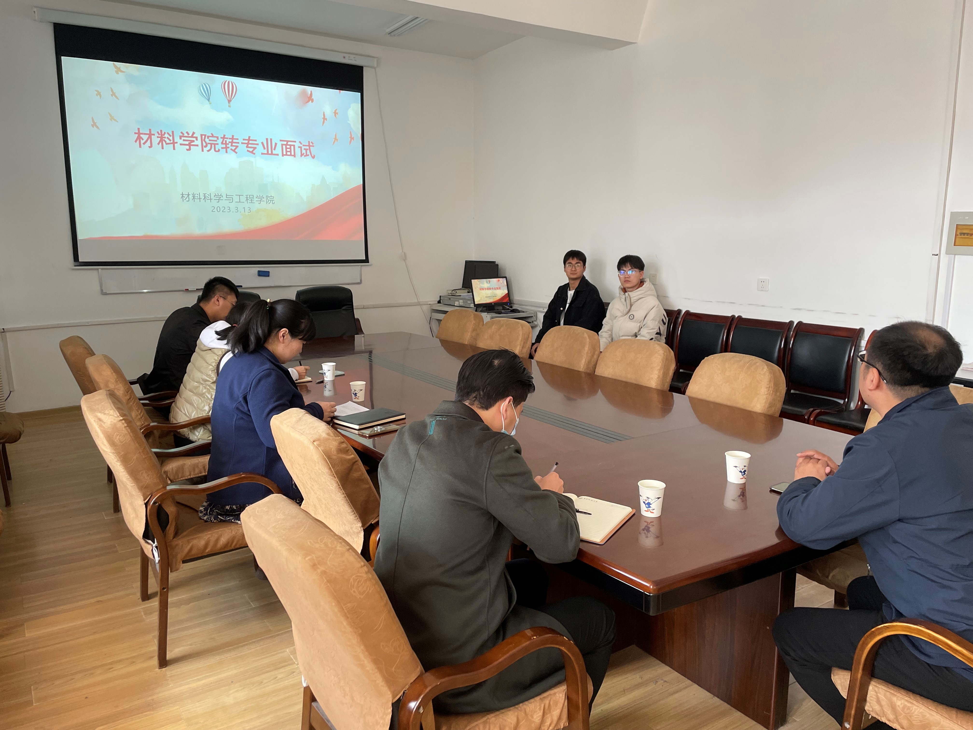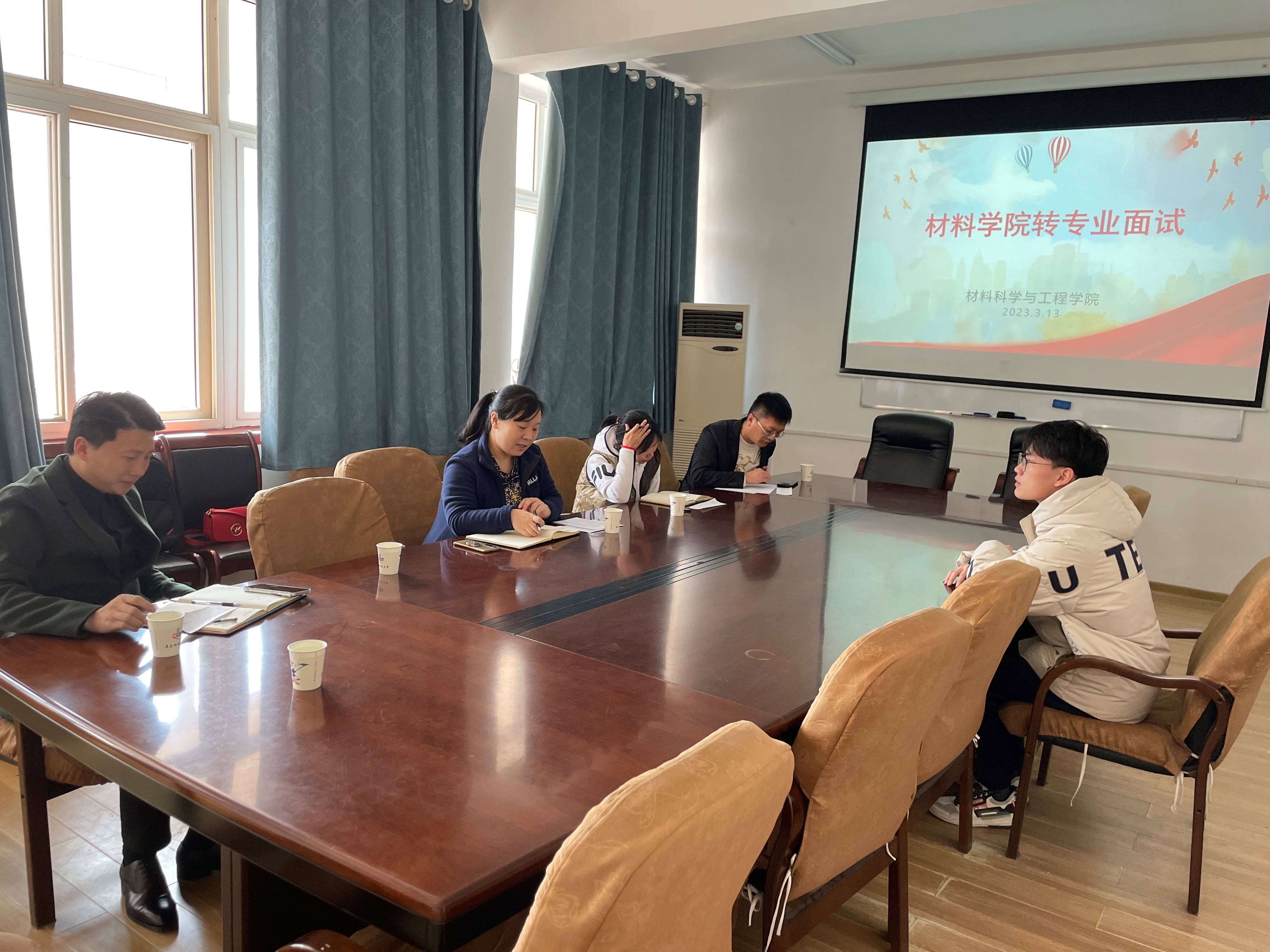 3月13日下午,学院在203会议室举行转专业面试。面试评委有学院副院长于薛刚,能材专业负责人孙琼老师,能材专业班主任王莉和白强老师,以及学院学工办刘亚鑫老师。参加面试是海洋学院轻化工程专业的两位同学,他们希望加入学院新能源材料与器件专业。