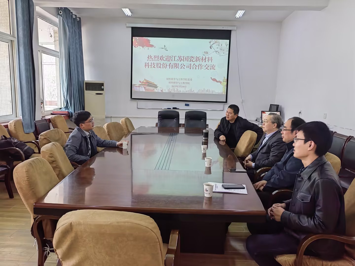 3月10日上午,江苏国瓷新材料科技股份有限公司总经理、我院2007届材料物理专业毕业生孙玄玄回学院访问交流,学院院长谢广文、副院长李桂村、副院长于薛刚、学科办公室主任董红周参加座谈会。