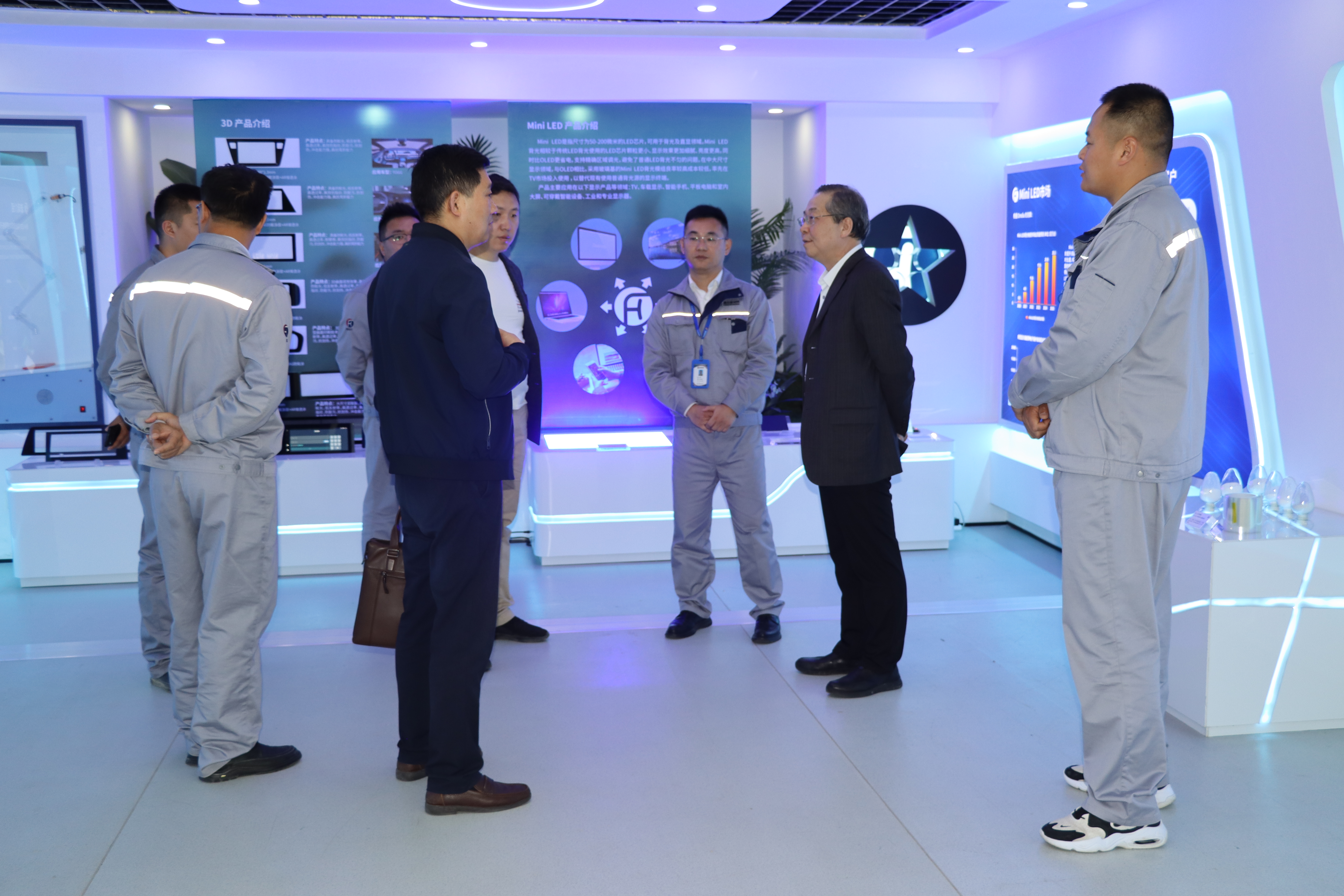 谢广文一行参观了青岛融合新材料科技有限公司总部展厅,听取了企业汇报,深入了解了公司发展历程、经营范围、研发队伍、技术创新、薪酬待遇和人才需求等情况。