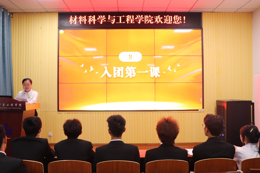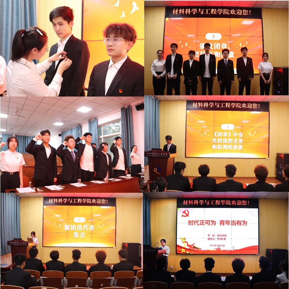 为深入学习宣传贯彻党的二十大精神,激发新团员的自豪感和归属感,5月25日晚,材料学院在学院楼 101举行“青春心向党,奋进新征程”新发展团员入团仪式。材料学院团委老师刘爽、优秀团员代表及全体新发展团员参加本次仪式,入团仪式由2022年度优秀共青团员周晓彤主持。