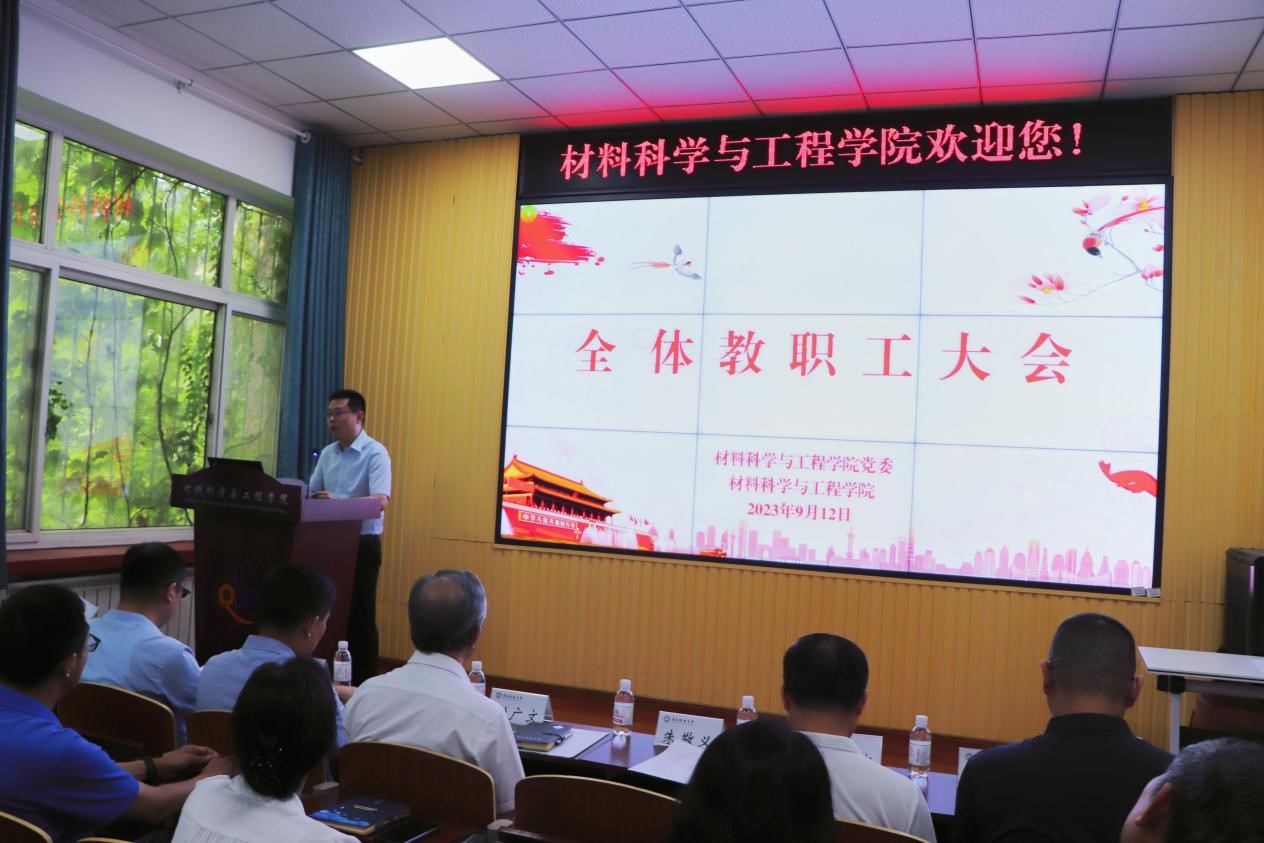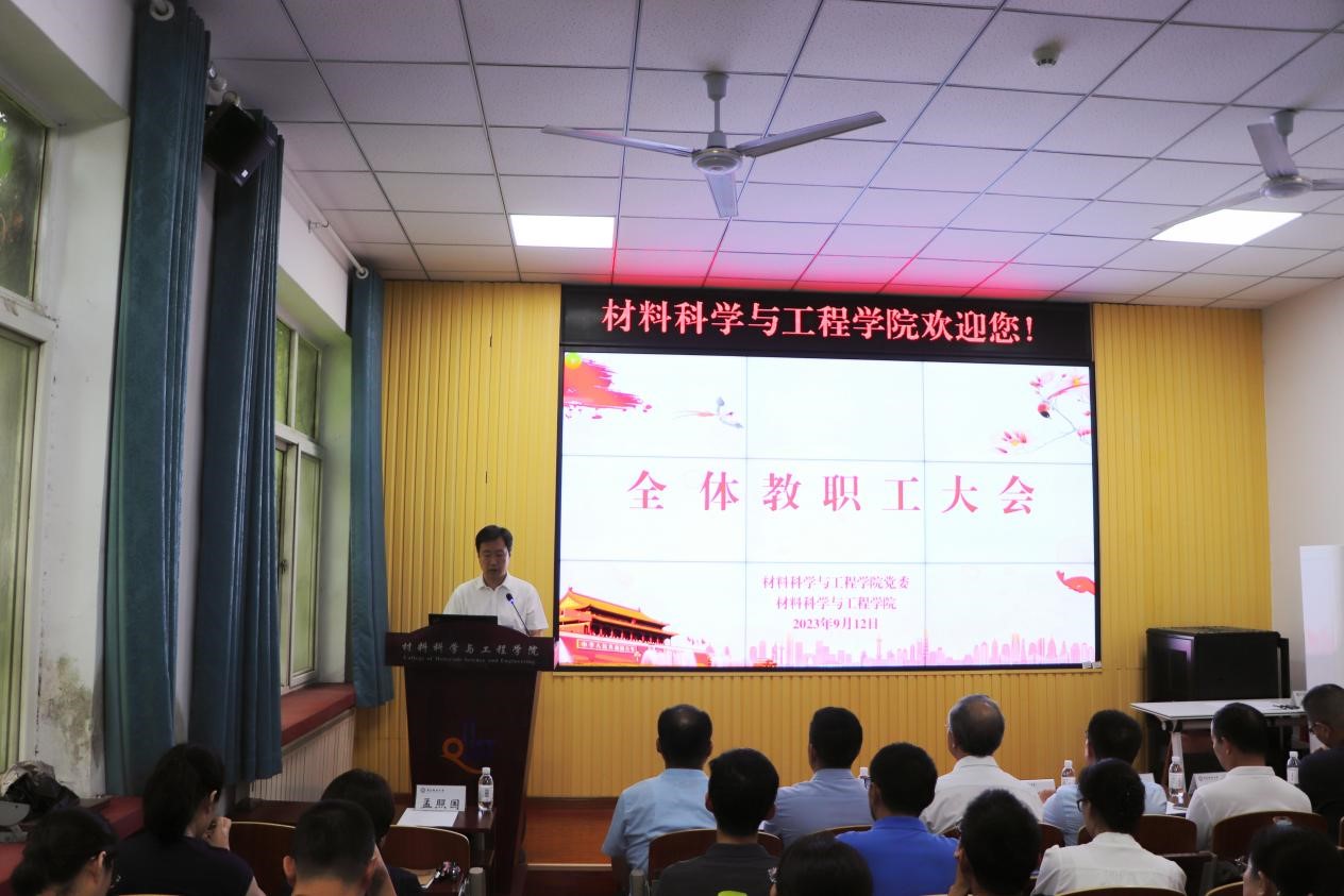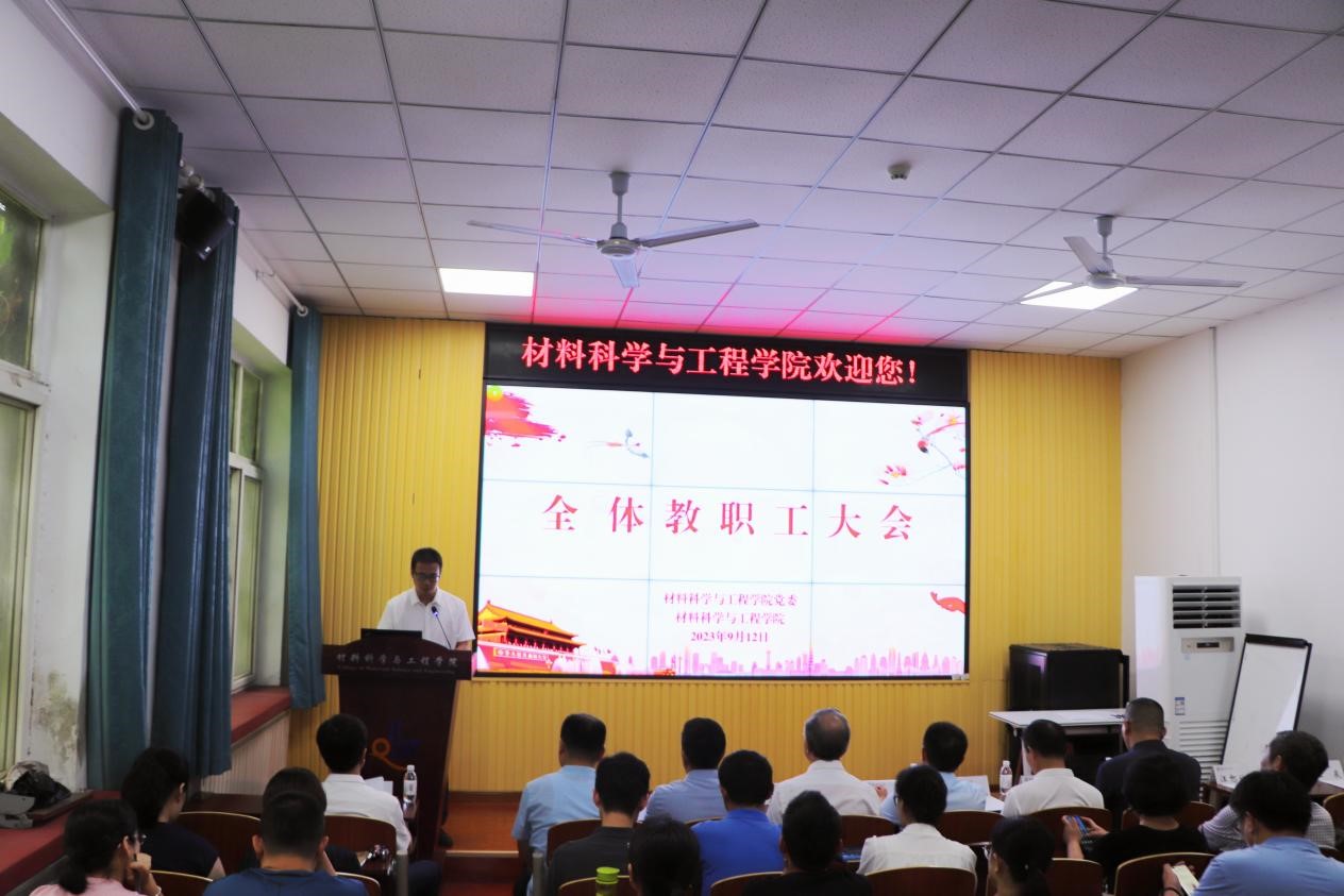 先进电工材料研究院执行院长郝春成,党委组织部干部科科长王辰,学院班子成员及全体教职工参加了会议。