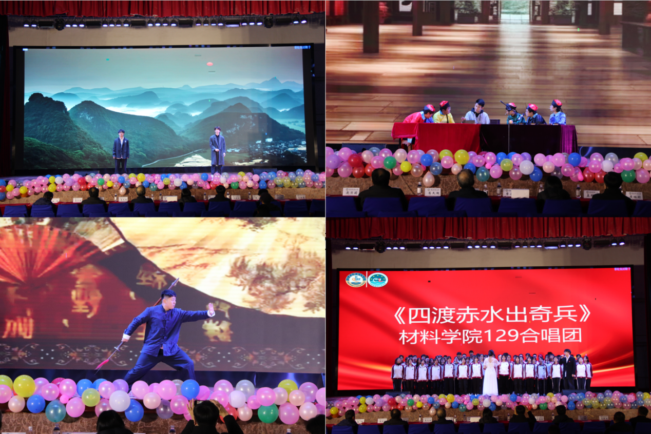 本场晚会共分为“初心不改,弦歌不辍”“踔厉奋进,舞悦芳华”“青春奋斗,扬帆起航”三个篇章。晚会在神秘甜瓜汁乐队的歌曲《艾蜜莉》中拉开帷幕。话剧《纳米夫妇》向2023级新生讲述了材料学院创始人张志焜和崔作林教授奖掖后学、甘为人梯的感人故事,以此号召学生们传承他们艰苦创业、不断创新、踏实坚韧、与时俱进的“纳米精神”;朗诵《爱国青春》诵出了青春的热血,诵出了深深的爱国情怀及其同学们的拳拳爱国心;舞蹈《舞动青春》舞出青春活力,尽显大学魅力,让同学们感受到大学的活力与热情;汉服社带来的《浮光》让同学们感受到了传统民族服饰文化之美,更深刻地认识到了传统文化的意义与内涵;最后《四渡赤水出奇兵》的激昂合唱将晚会推向高潮,激励同学们迎难而上,谱写出一路高歌。
