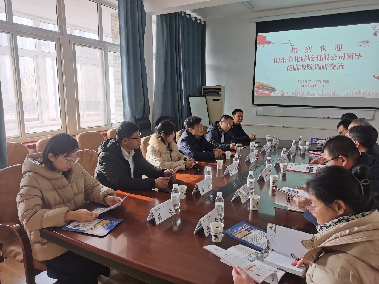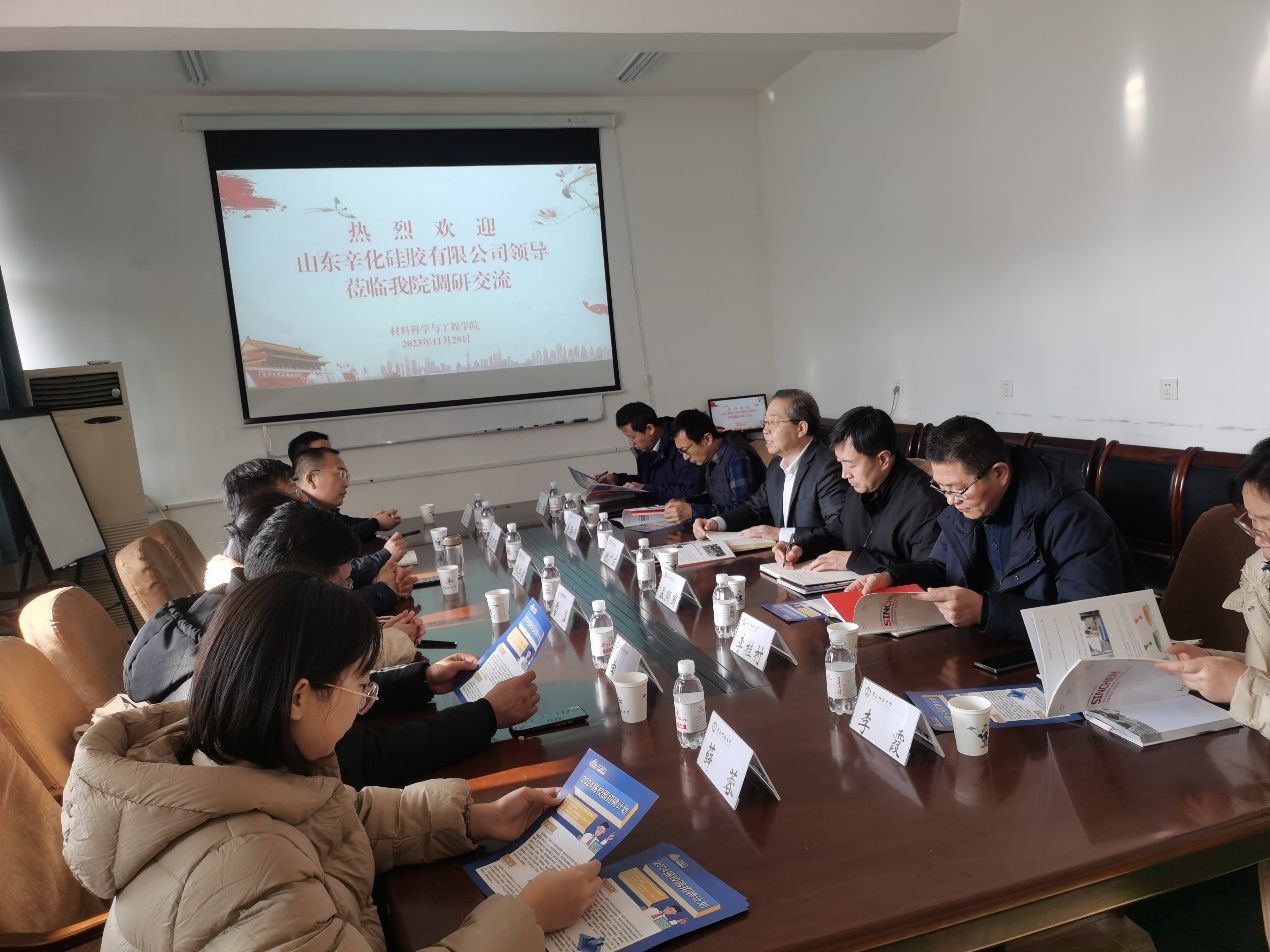 2023年11月29日,山东辛化硅胶有限公司董事长仇兴东、副总李夫强、人力资源经理雷萍一行,在枣庄融合创新发展中心主任曲明的陪同下来我院访问交流。院长谢广文、党委书记孟照国、副院长李桂村以及部分专业教师一起参加了交流会。