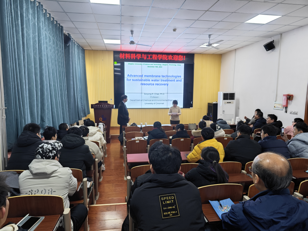 2023年12月19日,应青岛科技大学材料科学与工程学院姜鲁华教授邀请,美国辛辛那提大学Chemical Engineering Journal执行编辑SoryongRyanChae教授应邀来我校开展学术交流。Chae教授为师生作了题为“Advanced membrane technologies for sustainable water treatment and resource recovery”的学术报告,姜鲁华教授主持了报告会。