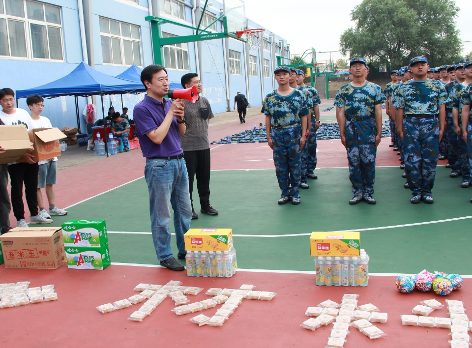随后,党委书记孟照国、党委副书记兼副院长葛夫国向同学们发放了月饼清凉饮料和小零食,并将学院的祝福和问候带给了各位新同学。此外,党委书记孟照国,党委副书记兼副院长葛夫国亲手将月饼等慰问品送到了指导军训的教官手中,代表学院向他们表达感谢之情,期望这次军训能够取得更好的成果,增强同学体魄和爱国主义意识。