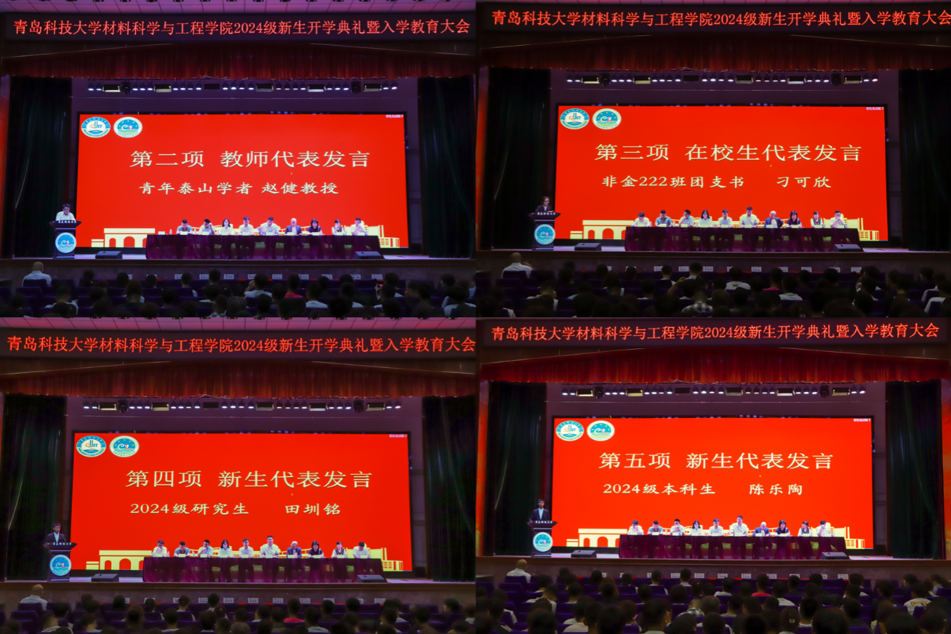 典礼上,孟照国为2024级本科新生班主任颁发聘书;孙瑞雪宣读了材料学院《关于聘任2024级学生班主任的决定》;教师代表赵健向2024级新生表示衷心的祝贺与欢迎,并分享了自己的求学生涯,鼓励同学们一要珍惜机会、勤学善思,二要勇敢尝试、不怕失败,三要追求卓越、高度自律;校医院卫生健康办公室纪永丽对同学们进行了安全教育,对校园卫生安全常识、流感等疾病预防、突发事件处理办法等进行科学指导,为2024级学生强调养成良好卫生健康意识的重要性;校友代表赵星之、张江红分别分享了个人人生奋斗经历,介绍了材料学科的基本情况和发展前景,为新生开展了职业生涯规划教育。