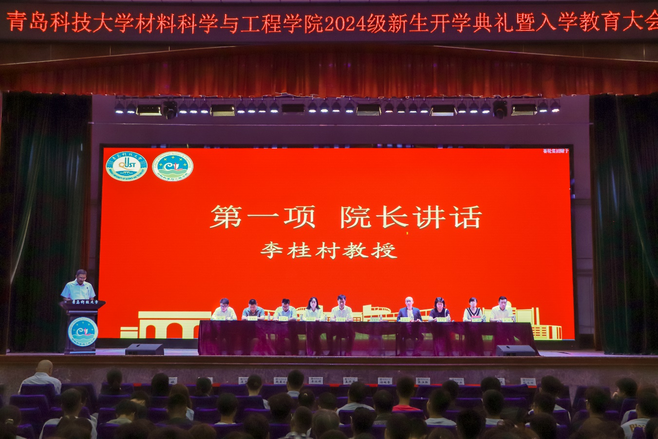 2024年9月24日下午,材料学院于四方校区西礼堂举行2024级新生开学典礼暨入学教育大会。学院党委书记孟照国,院长李桂村,副院长孙瑞雪,校医院卫生健康办公室纪永丽,校友代表深圳市安泰克科学仪器有限公司总经理赵星之、上海兆象有限公司创始人张江红,各教研室主任、新生班主任、辅导员及2024级新生参加大会。大会由学院党委副书记兼副院长葛夫国主持。