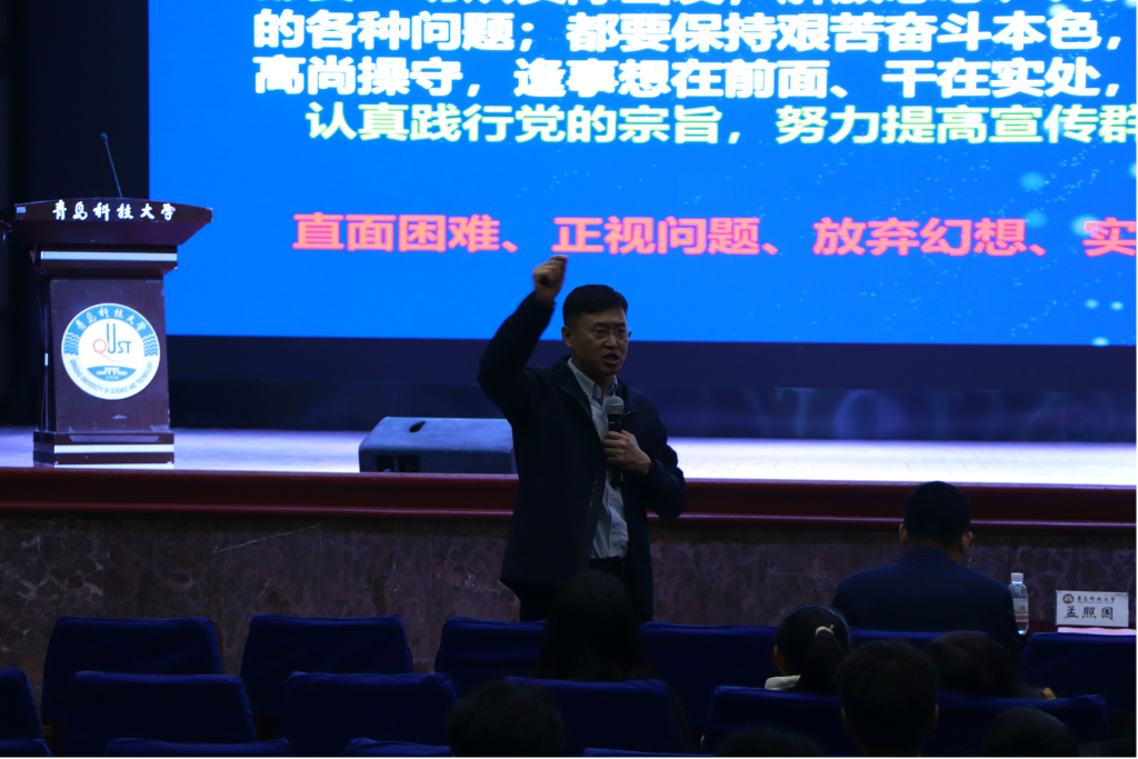 仪式最后,山东国瓷功能材料股份有限公司创始人之一、董事、党委书记宋锡滨为材料学子开展讲座。宋锡滨就“新材料高质量发展之我见”为主题,介绍我国在材料领域方面的国际地位与影响,详细讲解新材料在科技创新、国家高质量发展的重要意义。同时,宋锡滨通过自身丰富经历、广泛的知识兴趣的涉猎,激励材料学子不要满足于自身的舒适区,勇于迈出第一步,广泛获取知识,成长为一名综合性的、高能力的、勇承担的新时代强国的建设者。