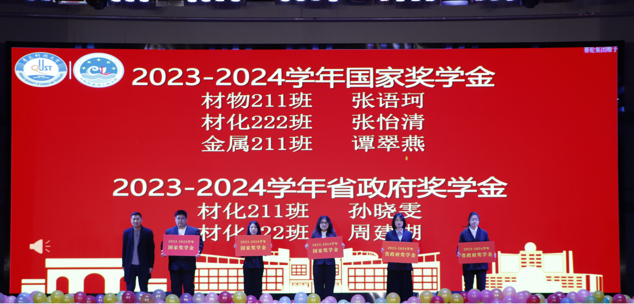 会上,葛夫国、李浩、隋凝、孙瑞雪分别向国家奖学金、省政府奖学金获奖学生、第十四届“挑战杯”大学生创业计划竞赛表现突出团队、2024年暑期社会实践优秀学生、大学生创新大赛(2024)获奖团队、青岛科技大学2024年运动会材料学院优秀个人颁发证书,进一步激励材料学子树立远大志向,奋发向学以求成才,充分展现出优秀学生的引领模范作用。