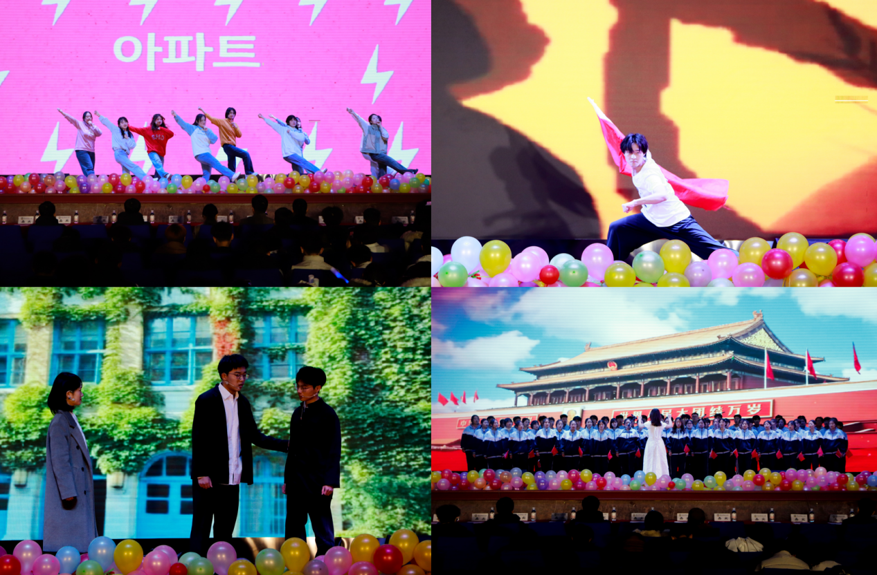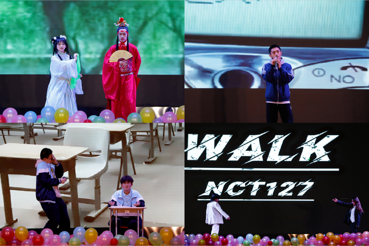 在第二篇章“踔厉奋发向未来”中,学生所表演的朗诵《歌颂祖国》字字句句沁润青年们的拳拳之心;舞蹈《雅韵》以《红楼梦》为题彰显了上下五千年的强大的文化自信与文化底蕴;《walk》舞蹈展现青春活力,肆意挥洒在观众们眼前;《考试还剩十五分钟》展现了考试过程中幽默诙谐的一幕幕画面。