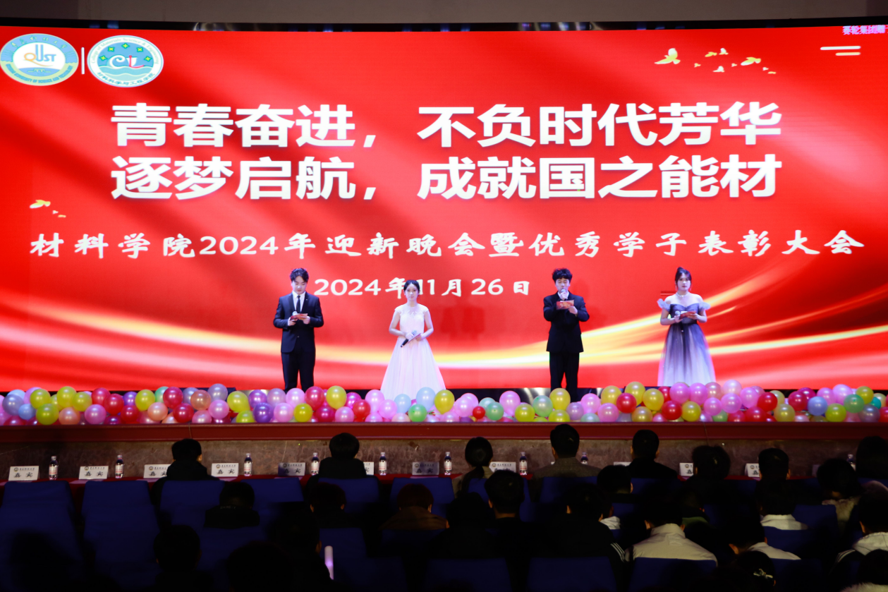 11月26日,材料学院2024年“青春奋进,不负时代芳华;逐梦启航,成就国之能材”迎新晚会暨优秀学子表彰大会于四方校区西礼堂举行,学校学生工作处副处长尤亭亭、学校团委副书记李浩、材料学院党委书记孟照国、党委副书记兼副院长葛夫国、副院长隋凝、副院长孙瑞雪、各教研室主任、全体辅导员及师生代表参加了晚会。
