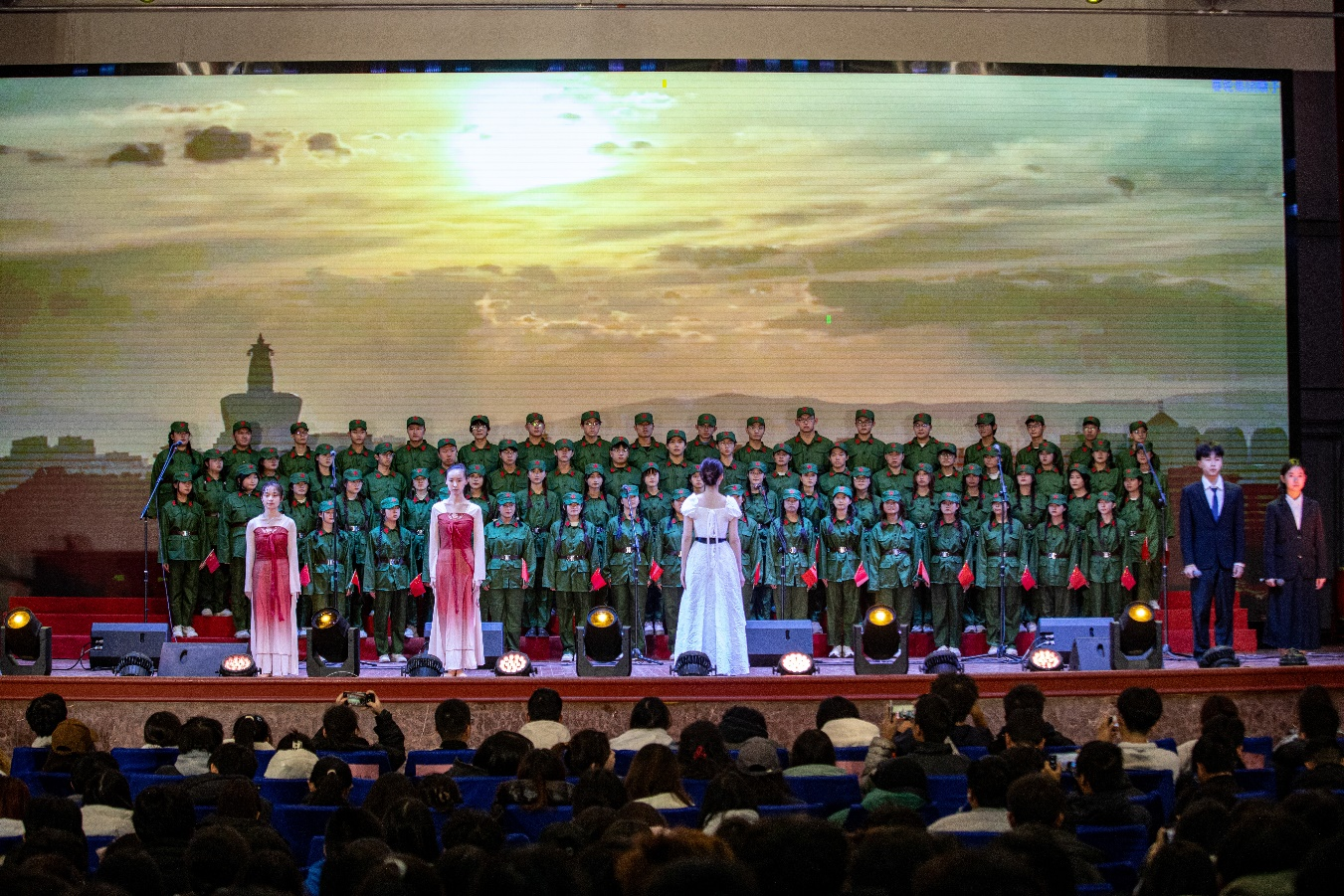 自10月份以来,材料学院积极响应学校开展合唱比赛的号召,在合唱团成员选拔和表演形式的设计上精心策划,高度重视日常排练,顺利挺进合唱决赛。学院本次演唱的是社会主义革命和建设时期曲目《我们走在大路上》,材料学子们通过慷慨激昂的朗诵与振奋人心的演唱,充分展现了他们奋发向上的斗志与激昂奋进的决心,激励着他们坚定信心去战胜一切困难,奋勇前行!