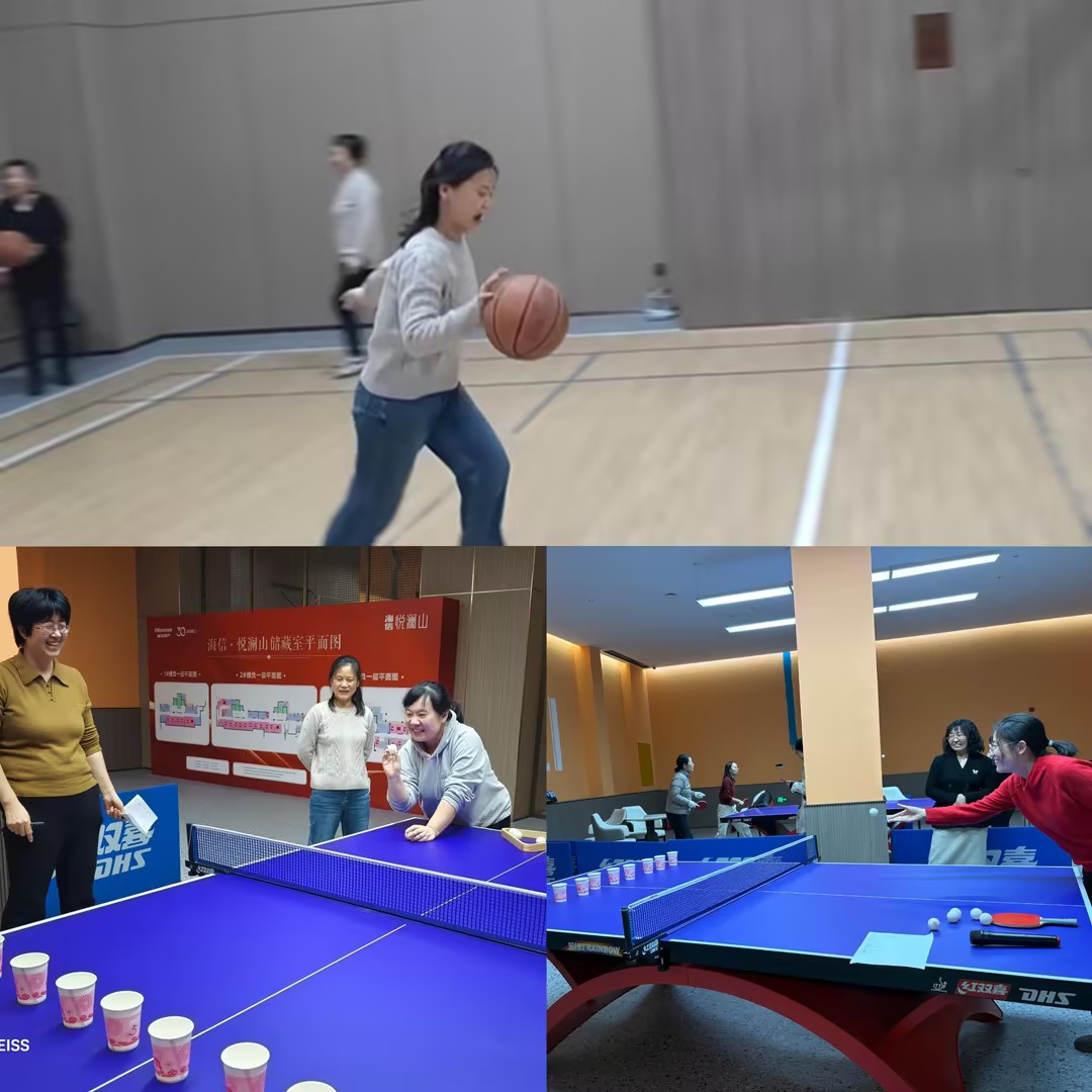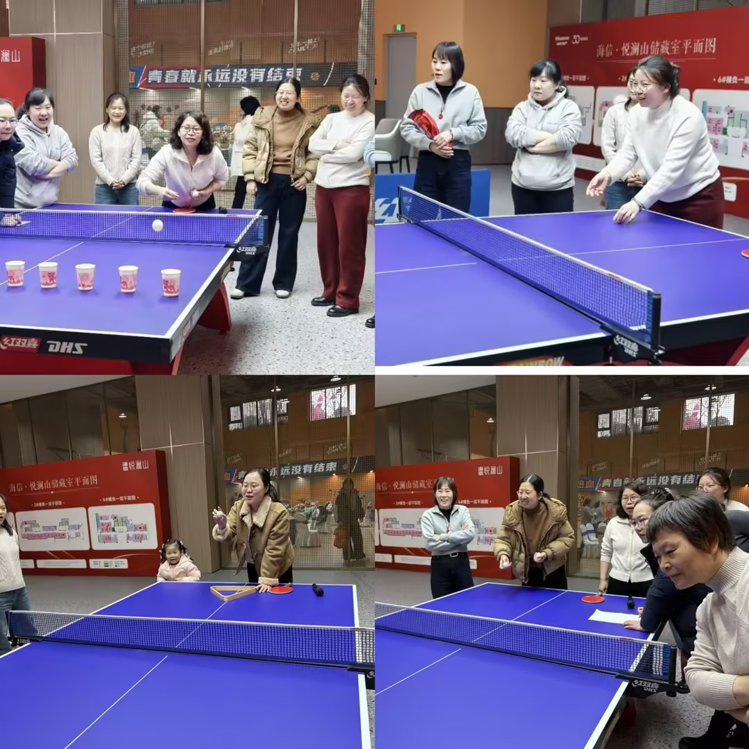 压轴环节“趣味乒乓”更是将气氛推向了顶点。女职工们全神贯注地挥拍击球,精准命中高分杯,展现了巾帼风采。比赛既考验了反应力,又为教职工们带来了轻松愉悦的互动体验。"