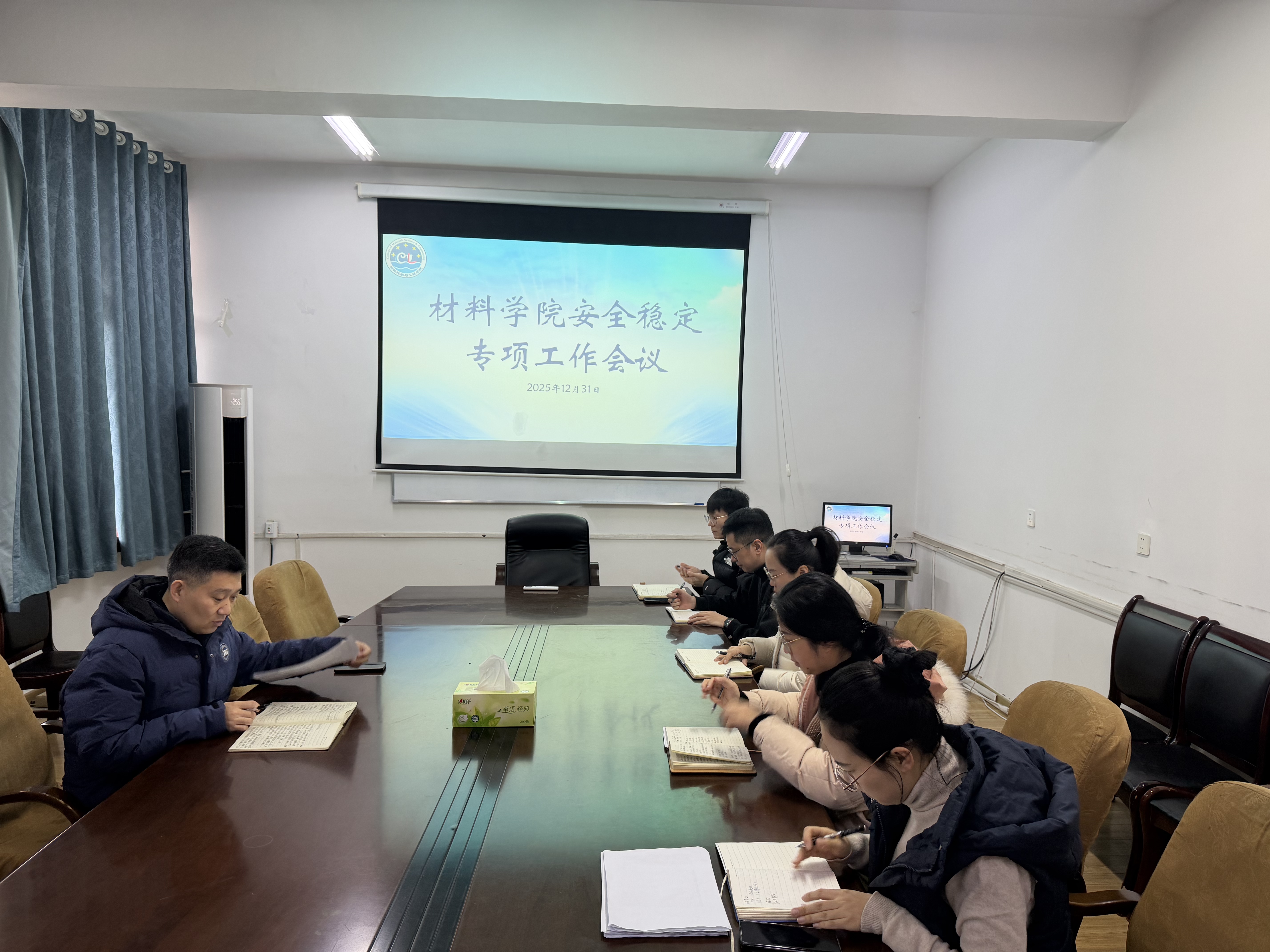 为切实保障学生人身财产安全,扎实推进学院安全稳定工作,全力营造平安和谐的校园环境与假期氛围,12月31日,材料学院组织召开安全稳定专项工作会议并开展宿舍实验室安全检查。材料学院党委副书记葛夫国主持会议并作工作部署,学工办全体辅导员参加会议。
