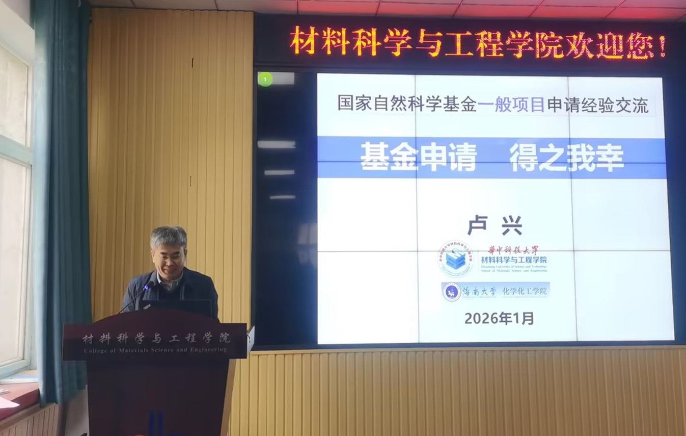 2026年1月6日上午,材料科学与工程学院在四方校区101会议室举行国家自然科学基金申请专题报告会。院长李桂村主持会议,特邀华中科技大学/海南大学卢兴教授担任主讲,四方校区百余名教师与会。卢兴教授结合其多年基金评审与指导经验,围绕基金申请新政策、评审动态及实践要点作深度解析。