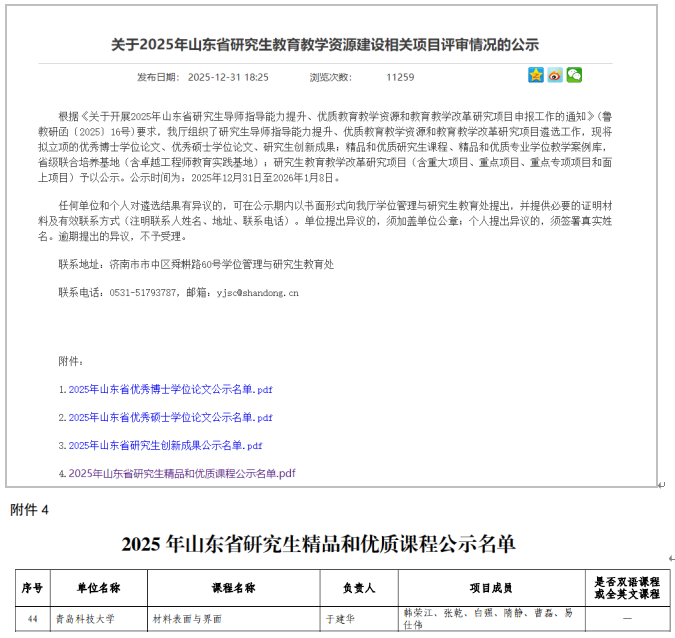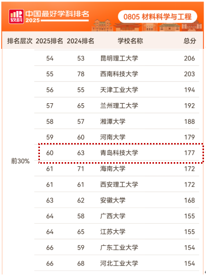 不断强化材料科学与工程山东省优势特色学科和青岛市产教融合学科建设;材料科学学科全球ESI排名升至1.195‰(去年同期1.448‰),材料科学与工程学科软科排名升至60(前30%),较去年上升了3个名次;2人入选山东省泰山青年学者专家,1人获评青岛市拔尖人才;新增认定2个山东省工程研究中心,青岛市纳米材料工程技术创新中心顺利通过绩效评估。