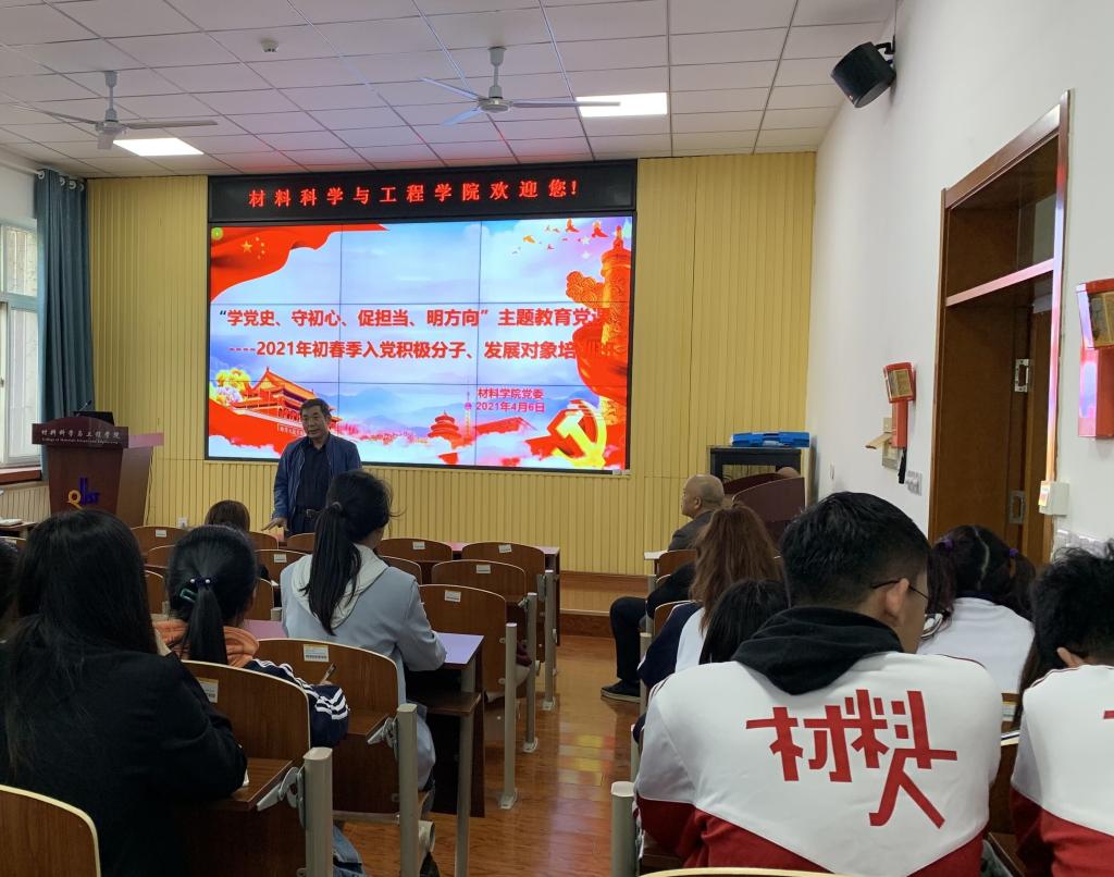 4月6日下午,材料学院分党校入党积极分子、党员发展对象培训班开课,党委书记杜芳林做开班动员,副书记高继宏上第一课。