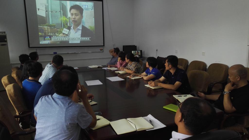 全体参会人员一直认为,少数香港激进示威者大肆破坏公共设施,罔顾公众安全,严重影响香港社会安宁和经济发展,这种挑战文明、法律底线的行为必须依法严惩,坚决支持特区政府止暴制乱,尽快恢复社会的正常治安和秩序;作为高校教师,大家一致表示要以身作则,高扬爱国旗帜,培育有理想、有追求、有担当的新时代大学生,为实现中华民族的伟大复兴贡献力量。