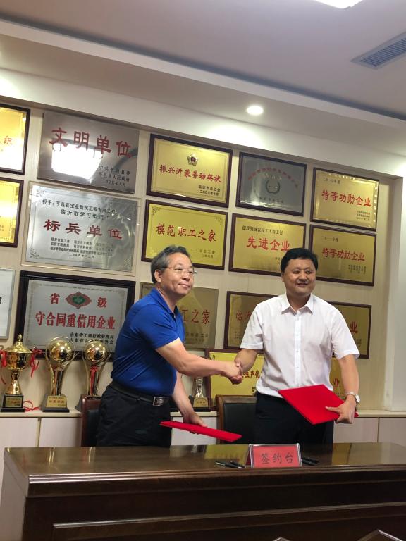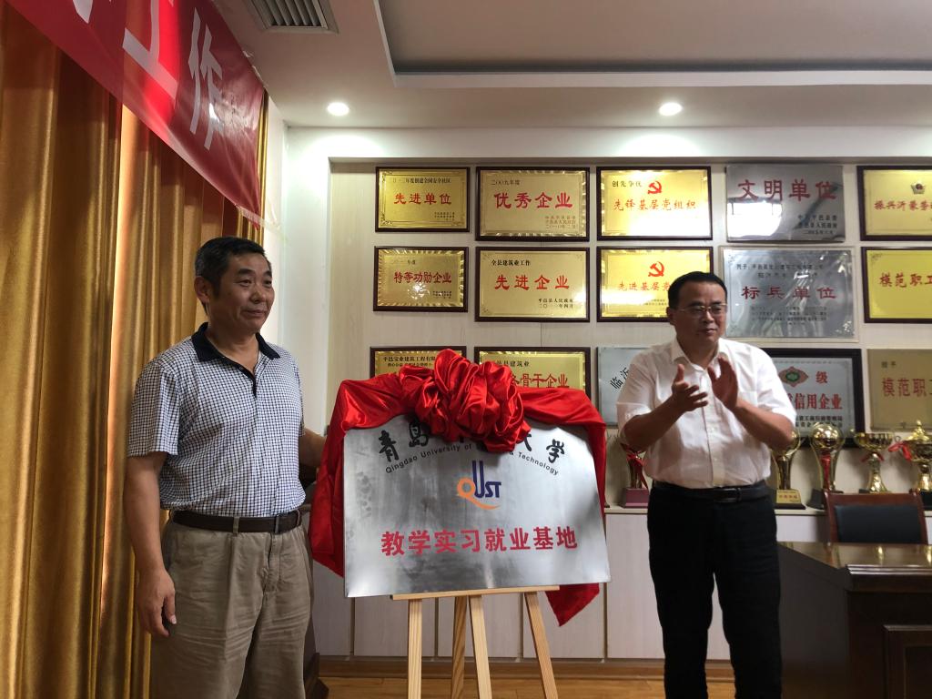 8月7日,学院党委书记杜芳林、院长谢广文一行到平邑县宝业建筑工程有限公司走访调研,并举行校企合作签约暨青岛科技大学教学实习就业基地揭牌仪式。平邑县人大常委会副主任孟凡民、平邑街道党工委书记张东升、平邑街道党工委组织委员姚刚、平邑县宝业建筑工程有限公司董事长总经理杨建国等出席有关活动。