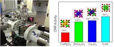 发表在ACS Applied Materials & Interfaces(2019, 11, 12525-12534)上的工作中,针对燃料电池非铂催化剂活性低、稳定性差等关键问题,研发了非贵金属氧化钴阴极氧还原电催化剂。作者设计了三种具有不同Co位点的尖晶石型氧化物Co3O4(Co2+Th,Co3+Oh),ZnCo2O4(Co3+Oh),CoAl2O4(Co2+Th),研究其催化活性中心及其在催化过程中的演变过程。与上海应用物理研究所合作在上海同步辐射光源进行了原位燃料电池-X射线光谱研究,揭示了钴基氧化物的催化活性强烈依赖于钴阳离子所处的几何配位环境及价态,其中位于八面体中心的Co2+(Co2+Oh)具有最高的催化活性,高活性的Co2+Oh在反应过程中逐渐向Co3+Oh转变。该工作首次揭示了氧化钴催化剂的活性位点,及其在燃料电池工况下的结构演变过程,对设计高活性、高稳定性的过渡金属氧化物电催化剂具有重要意义。该工作姜鲁华为第一通讯作者,材料学院刘静副教授为第一作者。
