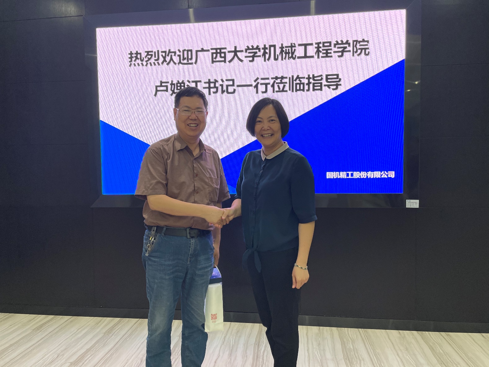 在国机精工股份有限公司,卢婵江一行与来自国机精工、郑州机械研究所、郑州日产等的校友进行了座谈。卢婵江书记向校友们介绍了近年来学校、学院的发展情况,她提到学院正处于爬坡过坎的关键发展期,要抓住发展机遇就需要广大校友的大力支持,希望学院和校友加强联系交流,相互促进发展。学院也将进一步加强校友工作,尽心尽力为校友服务。她还为各位校友送上学院精心准备的文创礼品, 校友们感动之余纷纷献上对母校最真挚的祝福,