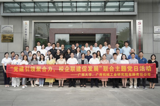 为进一步探索党建引领教育科技人才一体化发展路径,5月22日,由机械工程学院党委书记卢婵江带队,学院教工第三党支部联合机关党委人力资源处党支部和教务处党支部赴广西交通投资集团广西机械工业研究院有限责任公司(以下简称机械院)开展“党建引领聚合力,校企联建促发展”联合主题党日活动。机械院党委书记兼董事长谭洪河,副书记兼总经理李小春、党委委员兼副总经理吴湘柠等领导出席。广西大学人力资源处副处长吴彤、朱晨姝,广西大学教务处副处长胡立坤分别带领支部出席活动。
