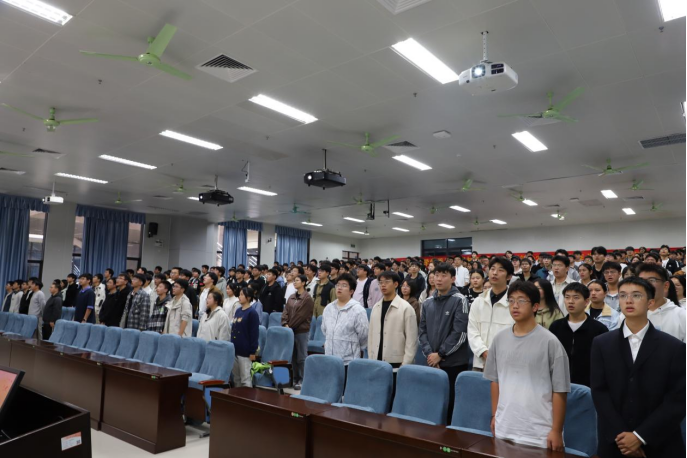 2025年11月4日下午,机械工程学院党委分党校2025年下半年开班仪式暨入党积极分子培训班第一次课在六教第二阶梯教室进行。院党委书记兼分党校校长卢婵江,院党委副书记兼纪委书记黄路明、院团委书记李华、培训班班主任彭程程及本期培训班近290名学员参加活动。