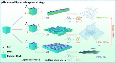 图1 pH诱导配体吸附策略可控合成低维Pd基金属示意图