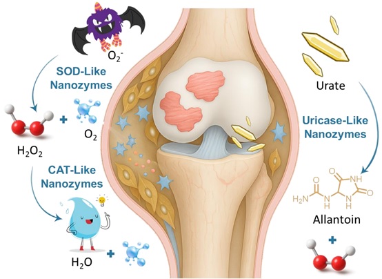 在此背景下,开发一种能够从病理根源层面出发,兼具抗炎与促进组织修复双重功能的新型治疗模式成为临床亟需解决的核心问题。纳米酶(nanozyme)作为一类人工设计的具有类酶催化活性的纳米材料,凭借其优异的催化性能、生物相容性及结构可调性,在关节软骨退行性疾病的干预治疗中展现出广阔前景。纳米酶不仅能有效清除过量活性氧(ROS),缓解局部氧化应激和炎症状态,还具备通过调节细胞信号通路促进软骨细胞存活及基质重建的潜力,正在成为该领域研究的前沿热点。