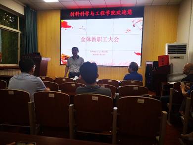 7月13日下午,材料学院在101会议室召开全体教职工大会,讨论通过学院人事聘任方案、部署假期工作。