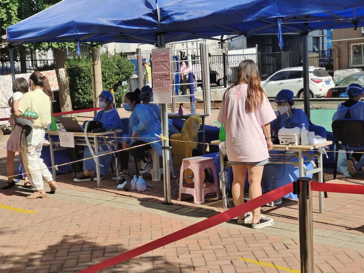 活动中,学院的二十余名志愿者在青岛市市南区八大峡街道团岛社区进行了核酸检测的志愿服务活动,协助社区进行常态化核酸检测工作。在志愿服务之前,社区的管理人对志愿者们进行了短暂的培训,帮助志愿者们掌握了做核酸时如何做好信息录入,以及在人员疏通时如何调整好自己的情绪,避免和群众发生争执等问题,同时对志愿者们开展安全教育,叮嘱志愿者们做好疫情防护工作。虽然天气炎热,但是志愿者不叫苦不叫累,坚持完成了一天的志愿活动。